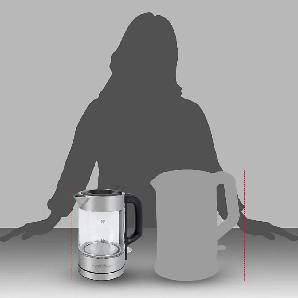 Bouilloire pratique de 0,5 litre en verreMoins d’espace requis et réduit la consommation d’eau inutileBoîtier en verre/acier inoxydableStation de base avec rangement du cordon (gainé d’acier inoxydable) Capacité jusqu’à 0,5 litreUtilisation d’une seule main – ouverture de remplissage à fermeture automatique dans le couvercleManipulation aisée grâce à la technologie sans câble et au connecteur à 360 degrésInterrupteur marche/arrêt (éclairage bleu)Réservoir d’eau (illuminé en bleu)Sans BPAÉlément chauffant en acier inoxydable dissimuléArrêt automatique et manuelIndicateur de niveau d’eauRéservoir d’eau en verre de sécurité résistant à la chaleurProtection contre l’évaporation et la surchauffe220-240 V, 50-60 Hz, 900-1100 W