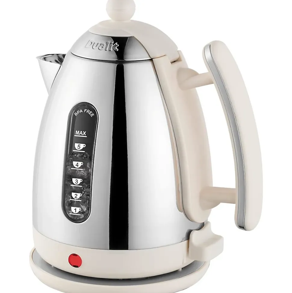 Bouilloire sans fil 1.5l 3000w crème Dualit – La bouilloire Lite de Dualit est une bouilloire au design droit facile à utiliser avec un bec uniforme, aussi élégant que fonctionnel.Avec les unités de mesure pratiques en indications de tasses et de litres, vous pouvez cuisiner la bonne quantité d’eau à tout moment, tandis que l’élément chauffant puissant garantit une montée en température particulièrement rapide.Le couvercle rabattable est stable et durable avec un grand bouton résistant à la chaleur et une protection des doigts. Le bec surdimensionné garantit que l’eau ne goutte pas et ne se renverse pas lors du versement. – Puissance : 3000 W.Capacité : 1,5 L.Sans BPARésistance cachée.Ebullition rapide.Filtre à eau.Niveau d’eau visible.Rotation sur axe.Indicateur de tasses.Corps en acier inoxydable.Dimensions (LxHxl) : 16.6 x 26 x 22.2 cmPoids : 1,23 kg.Couleur : Crème.