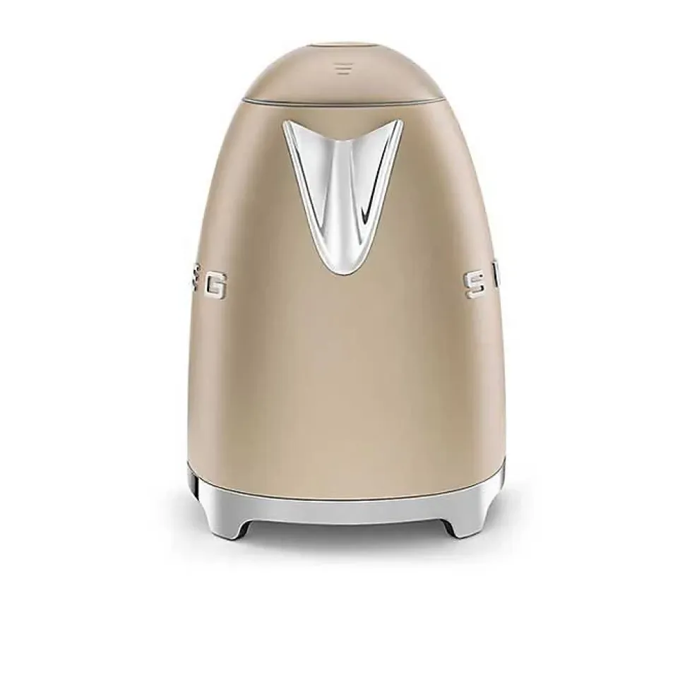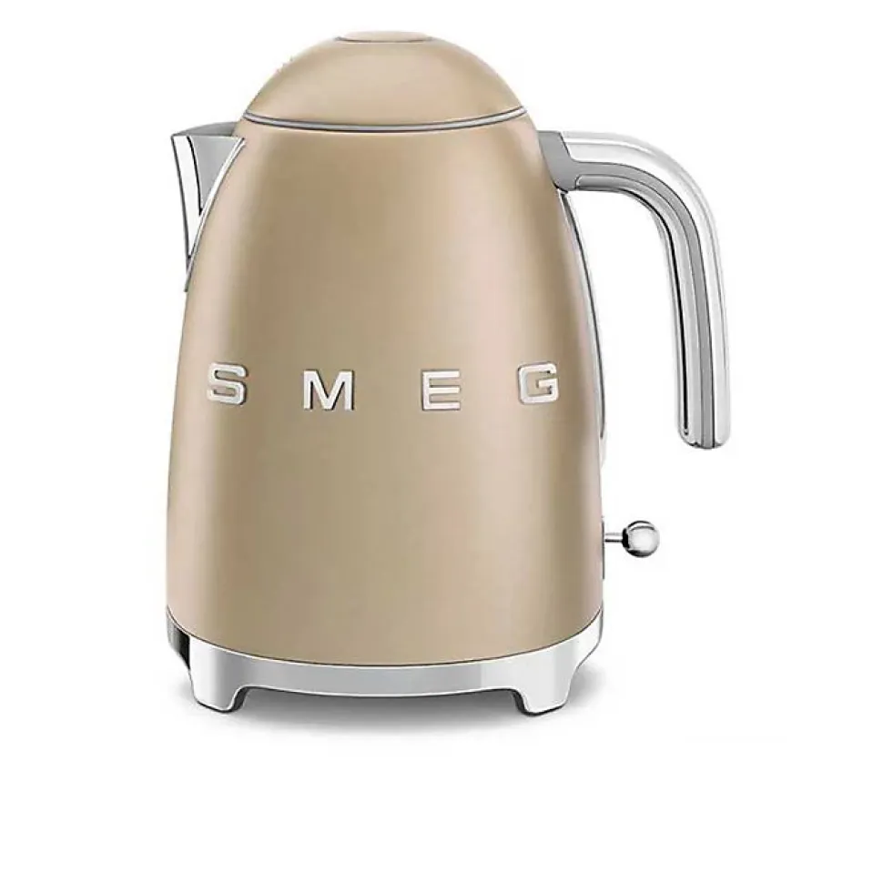 La bouilloire SMEG KLF03CHMEU Or Mat est dotée d’une structure en acier inox avec une base chromée. Elle dispose d’un levier de contrôle et d’un bec verseur en acier inox, ainsi que d’une poignée chromée. Avec une capacité de 1,7 litres / 7 tasses, elle offre une double visualisation du niveau d’eau en litres et en tasses.