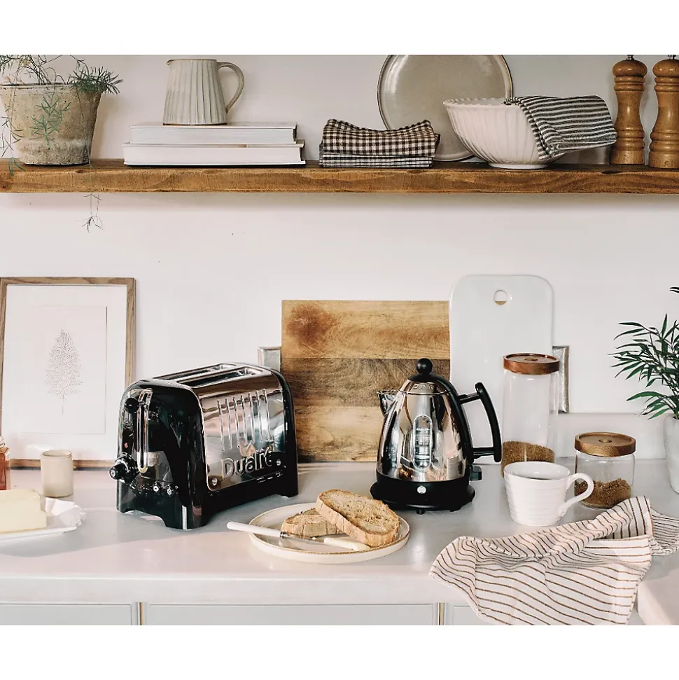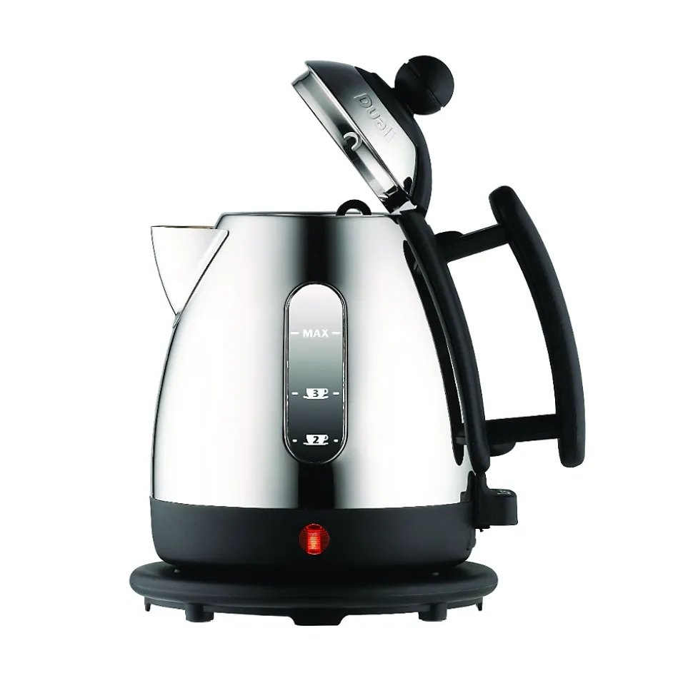 Bouilloire sans fil 1l 2000w Dualit – La bouilloire sans fil 1L 72220 est parfait pour un usage domestique, avec tous les avantages de la bouilloire de 1,5 litre , mais sur une plus petite échelle. La même grande fenêtre de visualisation des deux côtés dispose d’indicateurs de niveau de tasse de sorte que vous ne faites bouillir que la quantité d’eau que vous avez réellement besoin (minimum 2 tasses).La bouilloire possède un grand couvercle permettant un remplissage facile. – Puissance : 2000 WCapacité : 1 LRésistance cachéeProductivité 15 L par heureEbullition rapideSécurité ébullition à secFiltre à eauNiveau d’eau visibleRotation sur axePoignée isolanteIndicateur de tassesCorps en acier inoxydableDimensions : 20 x 16 x 21 cmPoids : 0,9 kgCouleur : Inox et noir