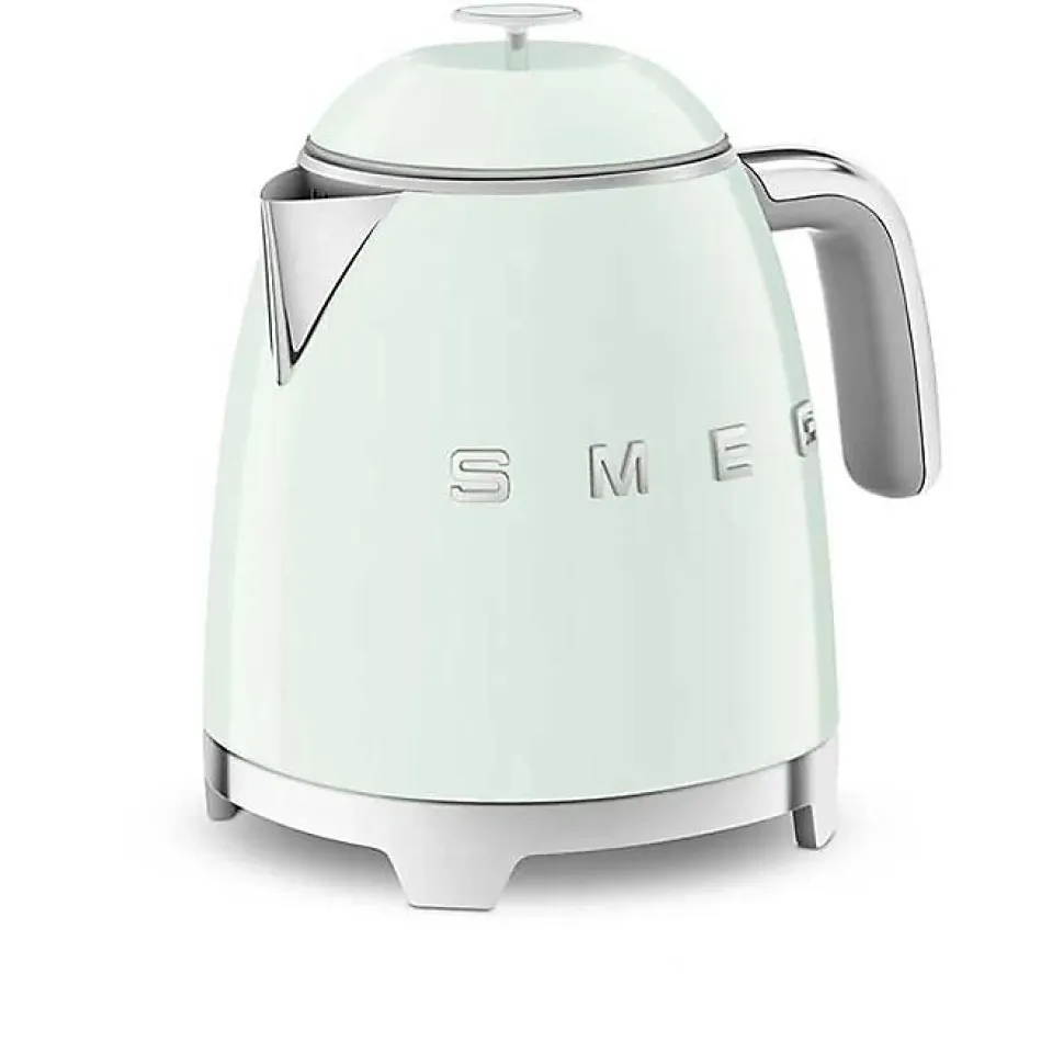 Bouilloire Smeg KLF05PGEU MINI VERT D’EAUCapacité 0,8 l – Puissance 1400 WattsFiltre inox à calcaire intégré non amovibleCouvercle à ouverture large (80°)Base rotative à 360°C – Arrêt automatique.