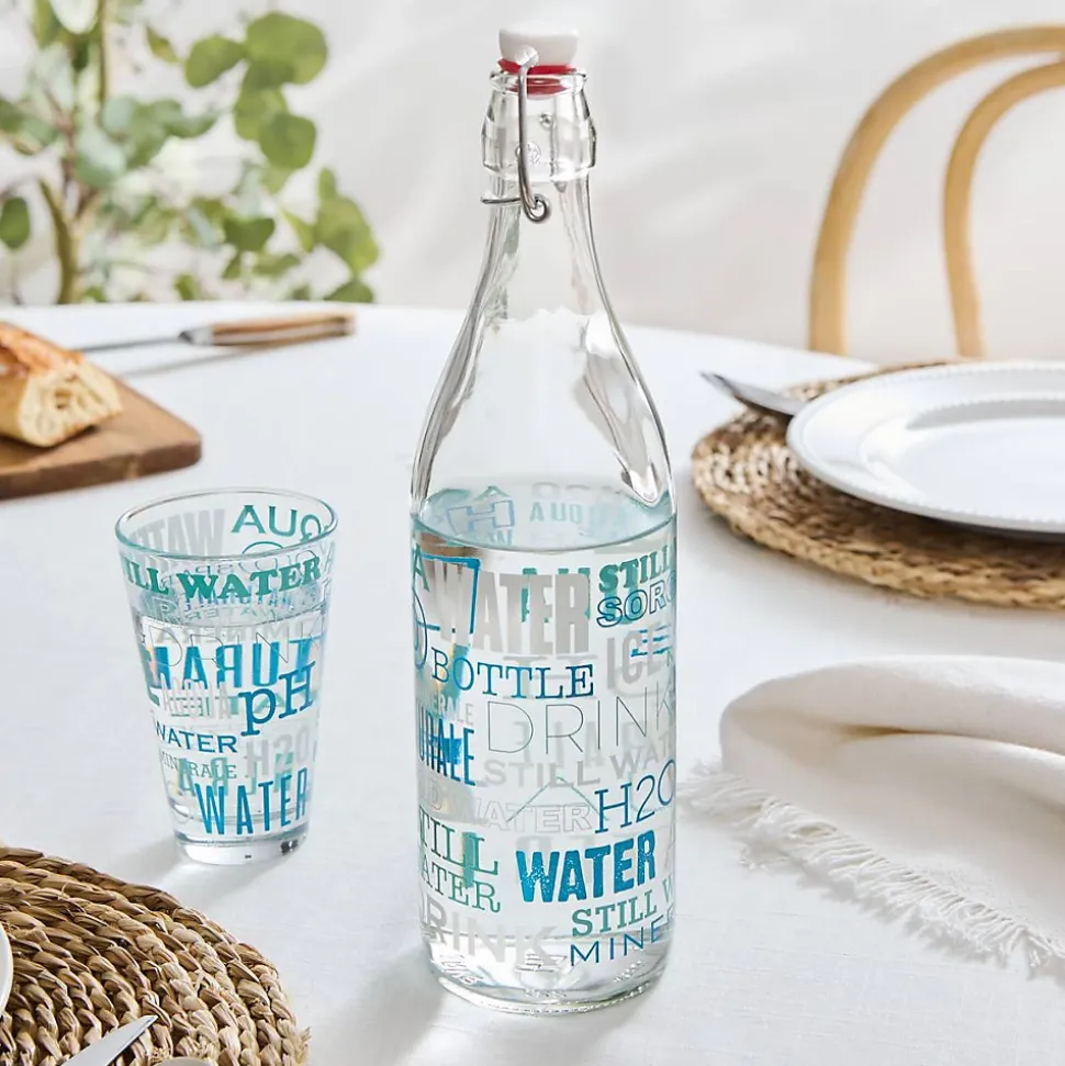 Ajoutez une note de style et de fraîcheur à votre table avec la bouteille de la collection AQUA. Idéale pour l’eau, les limonades ou les jus maison, elle allie un design moderne à une praticité quotidienne. Cette bouteille en verre d’une capacité de 1 litre est parfaite pour servir toutes vos boissons froides. Son bouchon mécanique hermétique préserve la fraîcheur et les bulles, tandis que ses motifs graphiques apportent une touche décorative à vos repas et réceptions. Description Corps principal en verre Bouchon mécanique pour une fermeture efficace Couvercle composé d’acier et de parties en plastique Produit apte au contact alimentaire Fabrication italienne Dimensions Diamètre : 8,6 cm Hauteur : 30,6 cm Contenance : 1 L Entretien Compatible avec le lave-vaisselle pour un nettoyage facile. Ne pas utiliser au micro-ondes. Qualité Marque : SG Secret de Gourmet Garantie 2 ans Dimensions et poids du colis 1 colis L 8,6 x l 8,6 x H 30,6 cm. 0,58 kg