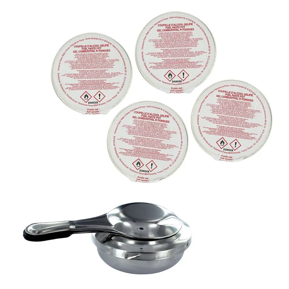 - DESCRIPTION : Fackelmann vous propose cet ensemble contenant un brûleur à alcool et 4 coupelles d’alcool gélifié, idéal pour les fondues savoyardes, bourguignonnes, vigneronnes