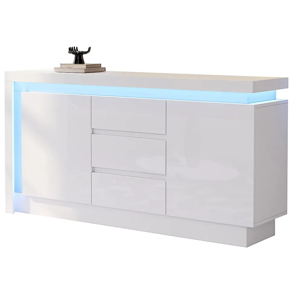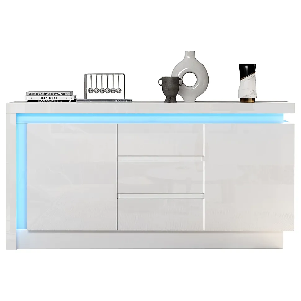 - Ambiance LED intelligente : les bandes lumineuses LED peuvent être contrôlées via une application mobile et offrent une expérience impressionnante pour regarder des films ou un éclairage chaleureux au quotidien grâce à leur couleur et leur luminosité réglables. Le buffet préserve ainsi l’atmosphère de votre salon.