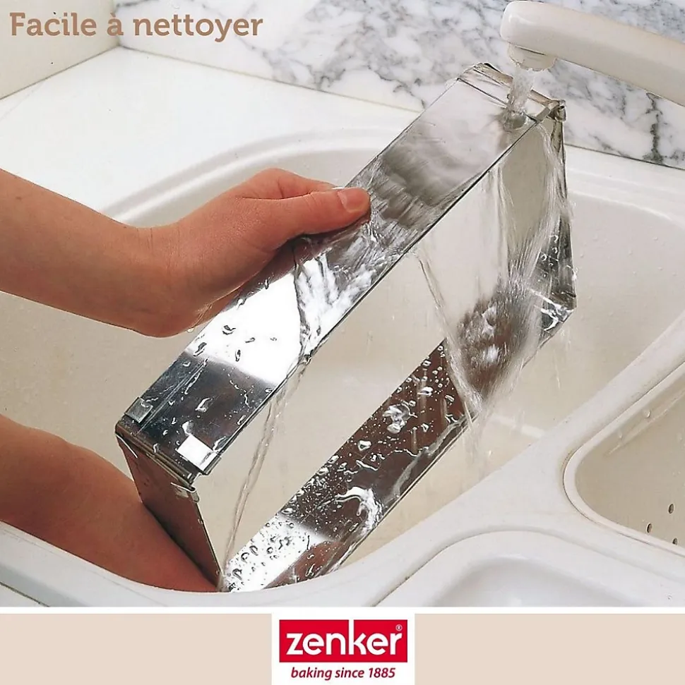 DESCRIPTION : Cadre de gâteau extensible et rectangle pour faire des gâteaux rectangulairesLE PETIT + : Ce moule à gâteau est extensible et permet de faire des gâteaux cuits ou nonCOMPOSITION : Acier inoxydableDIMENSIONS : Longueur : 27,5 à 52 cm ; Largeur : 18,5 à 34 cm ; Hauteur : 5 cmCONTENU : 1 cadre à gâteau extensibleCe cadre à gâteau permet de cuire des gâteaux, des gratins, des cookies et beaucoup d’autres choses. Le moule à gâteau est rectangulaire et extensible ce qui vous permet de réaliser des recettes de toutes les tailles souhaitées.Zenker est une marque faisant partie du groupe Fackelmann Brands et elle propose une large gamme d’ustensiles de pâtisserie et de moules à gâteaux. Concernant les ustensiles de pâtisserie, Zenker frappe fort en mettant à disposition des ustensiles de préparation mais aussi de décoration pour les pâtissiers confirmés. Côté moules à gâteaux c’est une marque pionnière qui propose des innovations telles que les moules à gâteaux en silicone et fibre de verre ne nécessitant pas de matière grasse et proposant des résultats de cuisson incroyables.Zenker possède donc une large gamme d’accessoires et d’ustensiles pour vous accompagner dans vos recettes du quotidien mais aussi pour des évènements exceptionnels comme les fêtes, les anniversaires, les mariages, etc.