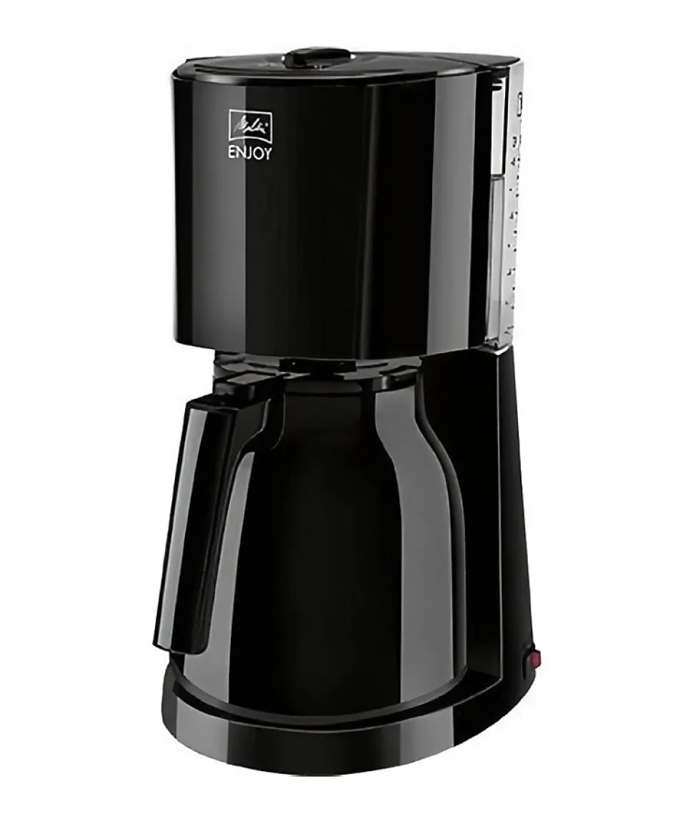 La cafetiere filtre MELITTA – Enjoy II Therm Noir 1017-06 est équipée d’une fonction AromaSelector pour régler l’intensité du café. Elle dispose également d’un porte-filtre pivotant amovible compatible lave-vaisselle, d’un systeme anti-gouttes, d’un réservoir a eau transparent avec indicateur externe du niveau d’eau, d’un arret automatique et d’un interrupteur ON/OFF lumineux.