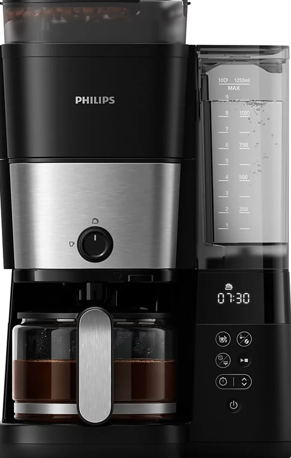 - Réservoir 1,25 L (jusqu’à 10 tasses) et design compact