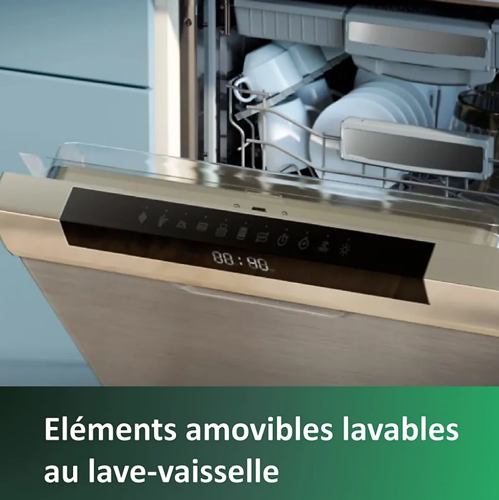 - Indicateur de niveau d’eau, système anti-calcaire et fonction de rappel/détartrage