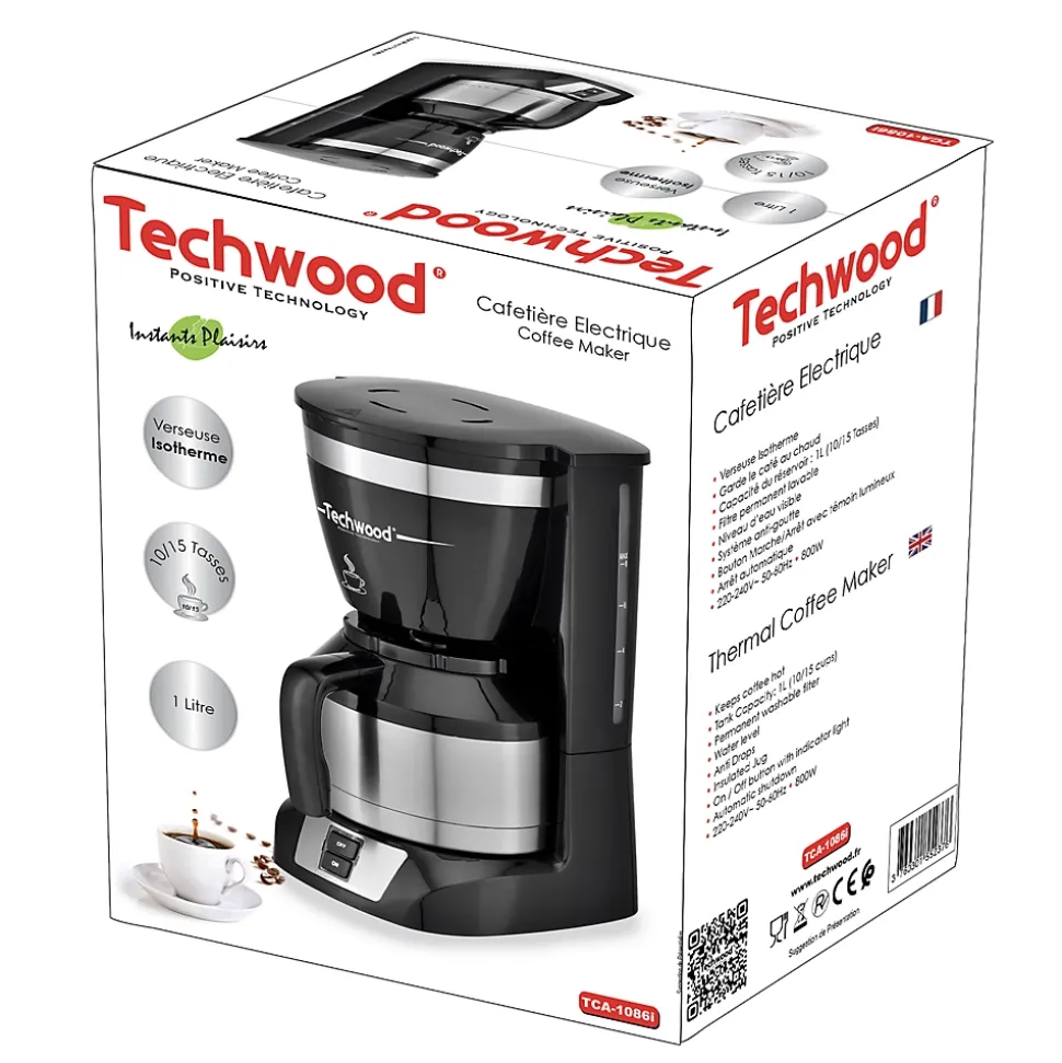 Cafetières Inox Isotherme Techwood TCA-1086I - Capacité du réservoir : 1L (10/15 Tasses) - Coloris Noir