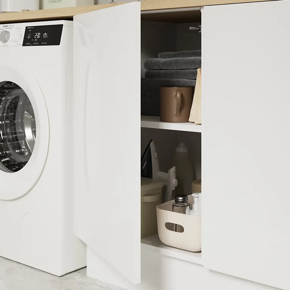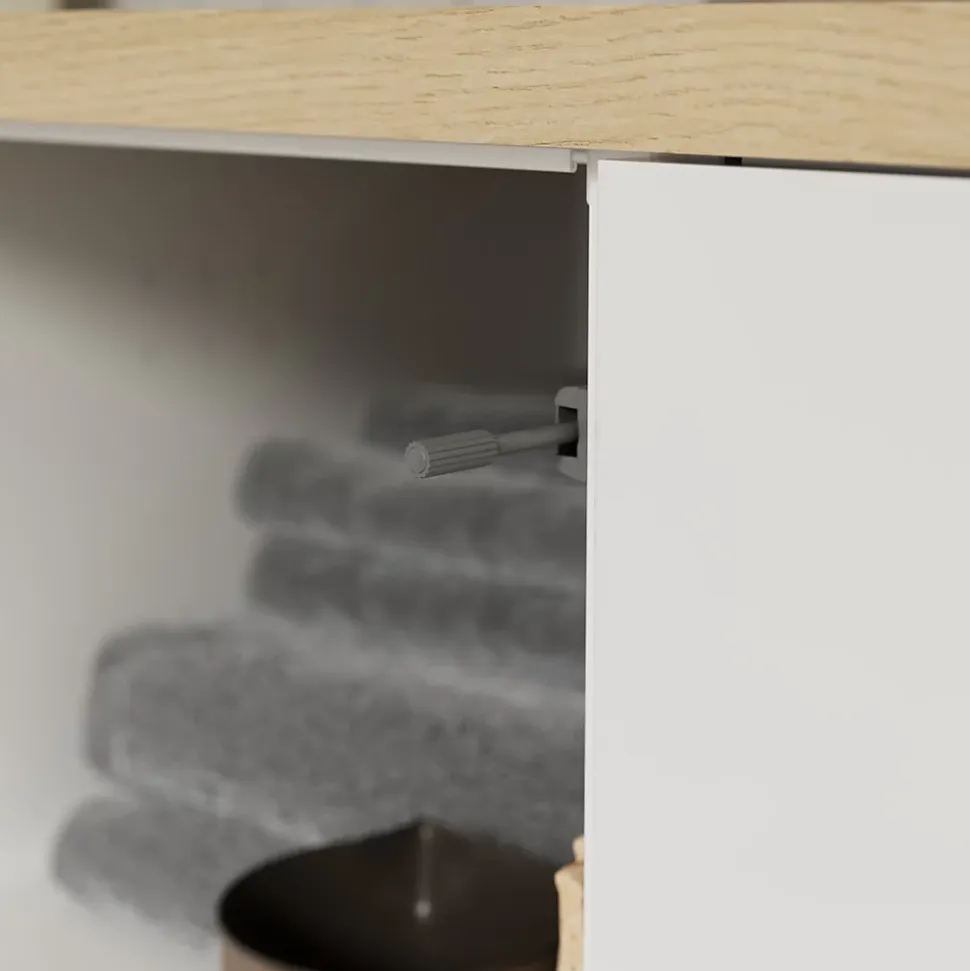 Nous avons conçu nos meubles de cuisine dans une perspective de durabilité. Ils sont voués à subir beaucoup d’usure et doivent donc être résistants. Des panneaux de 1,8cm d’épaisseur et une protection ABS sur les bords avant protègent ce meuble bas contre les chocs et garantissent sa robustesse. Ce meuble est livré avec 1 tablette, 4 pieds, des taquets en métal, des fixations d’assemblage et une notice. Nous proposons une large gamme de charnières disponibles séparément. Vous pouvez choisir des solutions à ouverture Push to open ou à fermeture amortie. Un détail qui fait toute la différence