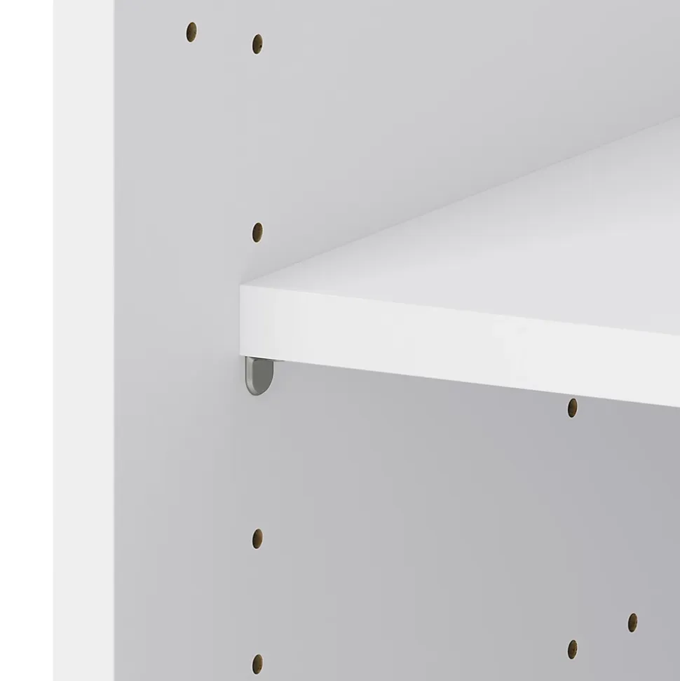 - Les petits trous sont plus faciles à dissimuler pour un aspect net et les taquets empêchent l’étagère de glisser et de coulisser