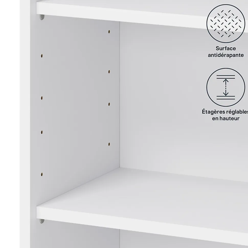 - Vous pouvez changer la position des tablettes ou en ajouter d’autres pour organiser votre meuble