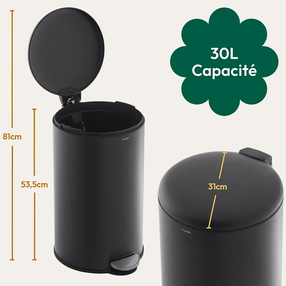 - FERMETURE DOUCE DU COUVERCLE: Pédale robuste pour une ouverture hygiénique sans les mains et fermeture silencieuse – une poubelle 30l fiable et discrète.