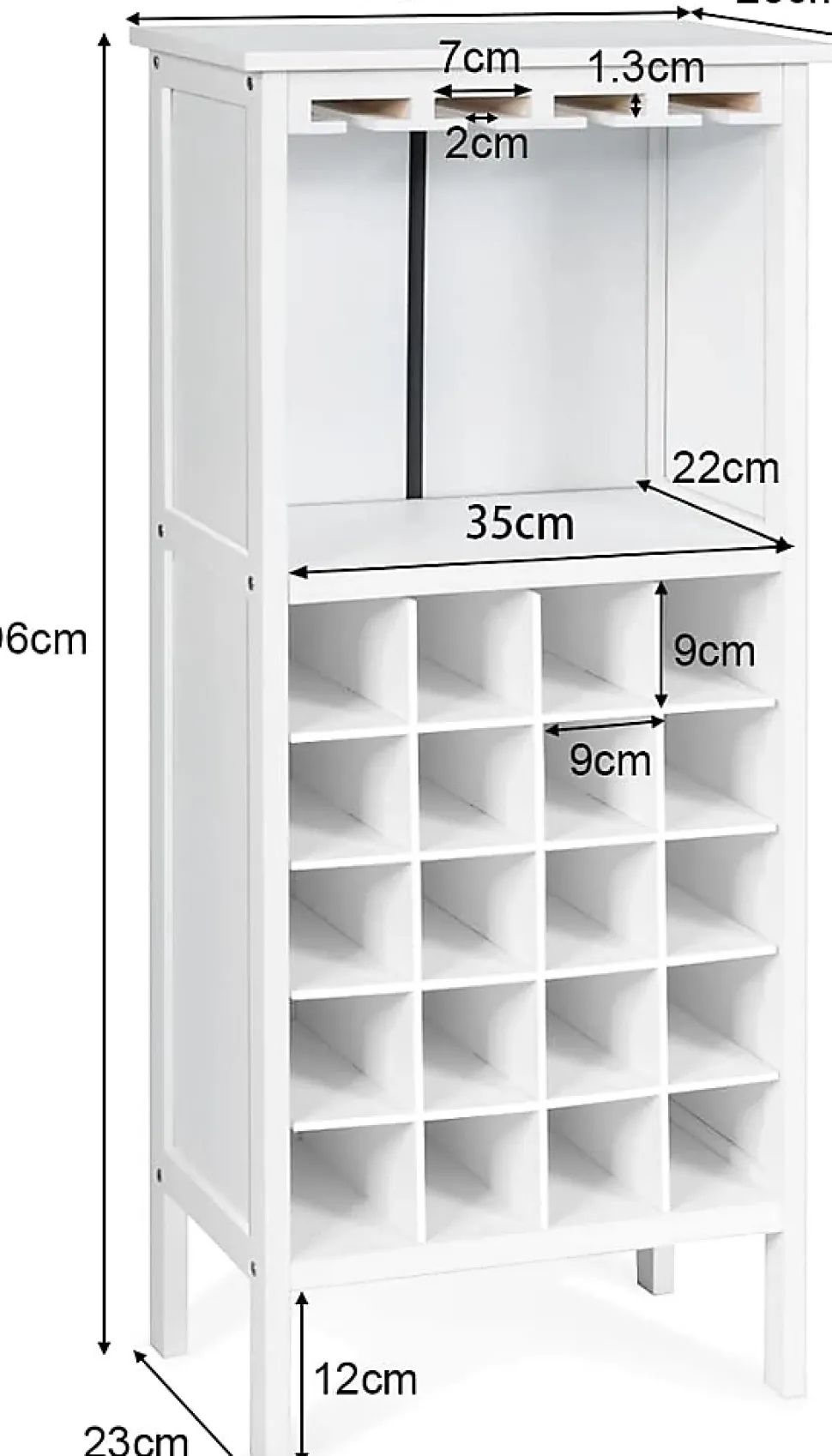 Grande capacité : Ce casier à vin, avec 5 tablettes de rangement divisée en 4 compartiments pour chaque étage, contient au maximum 20 bouteilles de vin d’un volume de 750 ml. En plus de la zone de stockage du vin en bas, le dessus du casier avec un porte-gobelet ajoute une fonctionnalité supplémentaire.