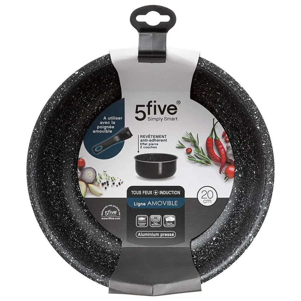 Préparez vos repas en toute simplicité avec la casserole en aluminium pressé 5five Simply Smart. Conçue pour allier praticité et performance au quotidien, elle est un indispensable pour une cuisine efficace et agréable.Description : Aluminium pressé : matériau léger et conducteur pour une chauffe rapide et homogène. Revêtement antiadhérent 2 couches : facilite les cuissons sans matière grasse et limite l’adhérence des aliments. Poignée amovible : permet de gagner de la place au rangement et facilite le nettoyage. Compatible tous feux : utilisable sur plaques électriques, gaz, vitrocéramique, halogène et induction.La casserole en aluminium pressé 5five Simply Smart est un ustensile pratique et polyvalent qui accompagne vos recettes du quotidien. Elle combine performance, légèreté et simplicité d’utilisation pour une cuisine maline au quotidien.
