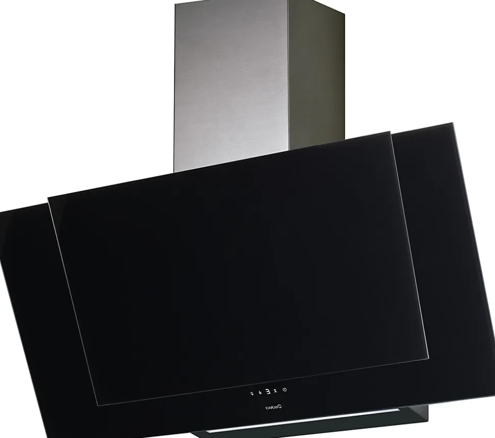 Type : murale, décorative, inclinée, pose libreRaccordement : recyclage ou évacuation extérieureFinition : verre noir et inoxClasse énergétique : A+Efficacité énergétique : Vapeur et fumée : A / Éclairage : B / Filtration des graisses : ETension d’alimentation : 220V-240V ~50HzConsommation : 23,1kWh/an – 0,4W en veille – 0W en mode stand-byMoteur :Brushless BT3, consommation max. 110W, extra silencieux5 niveaux de puissance d’extraction + 1 mode booster intensifPuissance d’extraction (UNE/EN 61591) : max. 385 m3/h, min. 170 m3/h, turbo 575 m3/hPuissance d’extraction (en mode évacuation) : max. 900 m3/hNiveau sonore (EU N°65/2014) : min. 44 dB(A), max. 61 dB(A), turbo 69 dB(A)Dimensions :Hors tout L.900 P.306 H.845 à 1130 mmÉvacuation 150/125 mmProvenance : EspagneNormes : CE, UNE/EN 61591Autres caractéristiques :Panneau frontal ouvrant pour utilisation intensive et efficacité optimalePanneaux de contrôle digital à touches sensitivesMinuterie de mise en veille automatiqueVoyant de saturation des filtresÉclairage ruban LED à intensité variableSystème d’installation simplifiéeFiltre(s) à graisse lavable(s) en machineFiltres à charbon réf. 02859394 (non inclus)Cordon d’alimentation avec prise