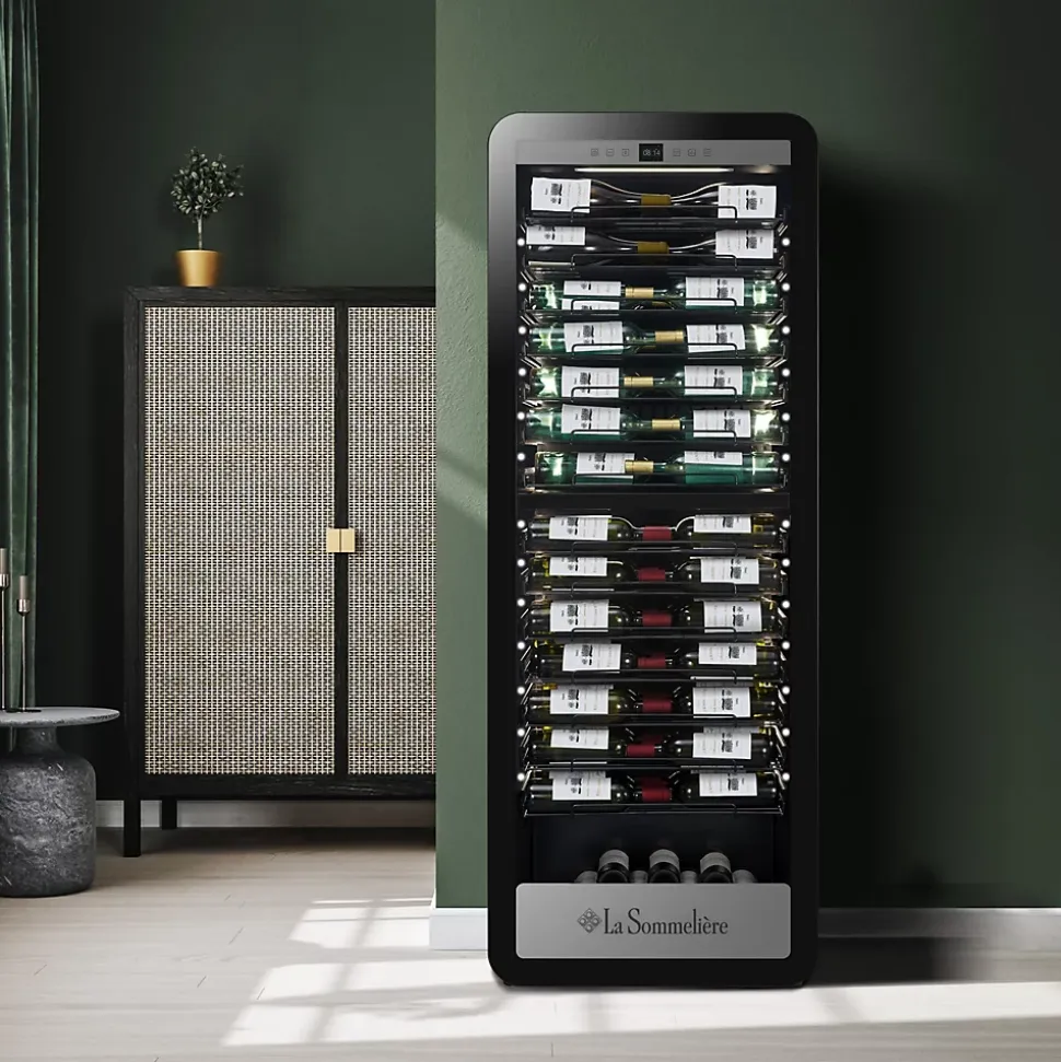 Cave de vieillissement de vin et mise en température double zone APOGEE 185DZPRO #html-body [data-pb-style=PMXTQY2]{justify-content:flex-start;display:flex;flex-direction:column;background-position:left top;background-size:cover;background-repeat:no-repeat;background-attachment:scroll}Une cave à vin polyvalente pour la conservation et la mise à température de vos vinsLa cave à vin APOGEE 185DZPRO est une cave de vieillissement et un choix idéal pour les professionnels et amateurs de vin recherchant un équipement à la fois performant et élégant. Conçue pour stocker jusqu’à 184 bouteilles, elle permet de préserver vos crus dans des conditions optimales, avec une gestion double zone, adaptée à différents types de vin.Spécifications TechniquesCapacité totale : 184 bouteilles* : Zone supérieure : 77 bouteilles et Zone inférieure : 107 bouteillesType d’installation : Pose libreDesign : Cadre de porte noir moderneSystème de refroidissement : Compresseur puissantType de froid : Froid brassé pour une répartition homogèneAmplitudes de température : Zone supérieure : 5°C – 12°C et Zone inférieure : 12°C – 20°CRégulation : Contrôle électronique précisThermomètre : Digital avec affichage blancÉclairage : LED blanc latéral pour une mise en lumière éléganteHygrométrie : Régulée naturellement grâce au principe de l’hygrodynamiePorte : Vitrée avec serrure, triple vitrage en