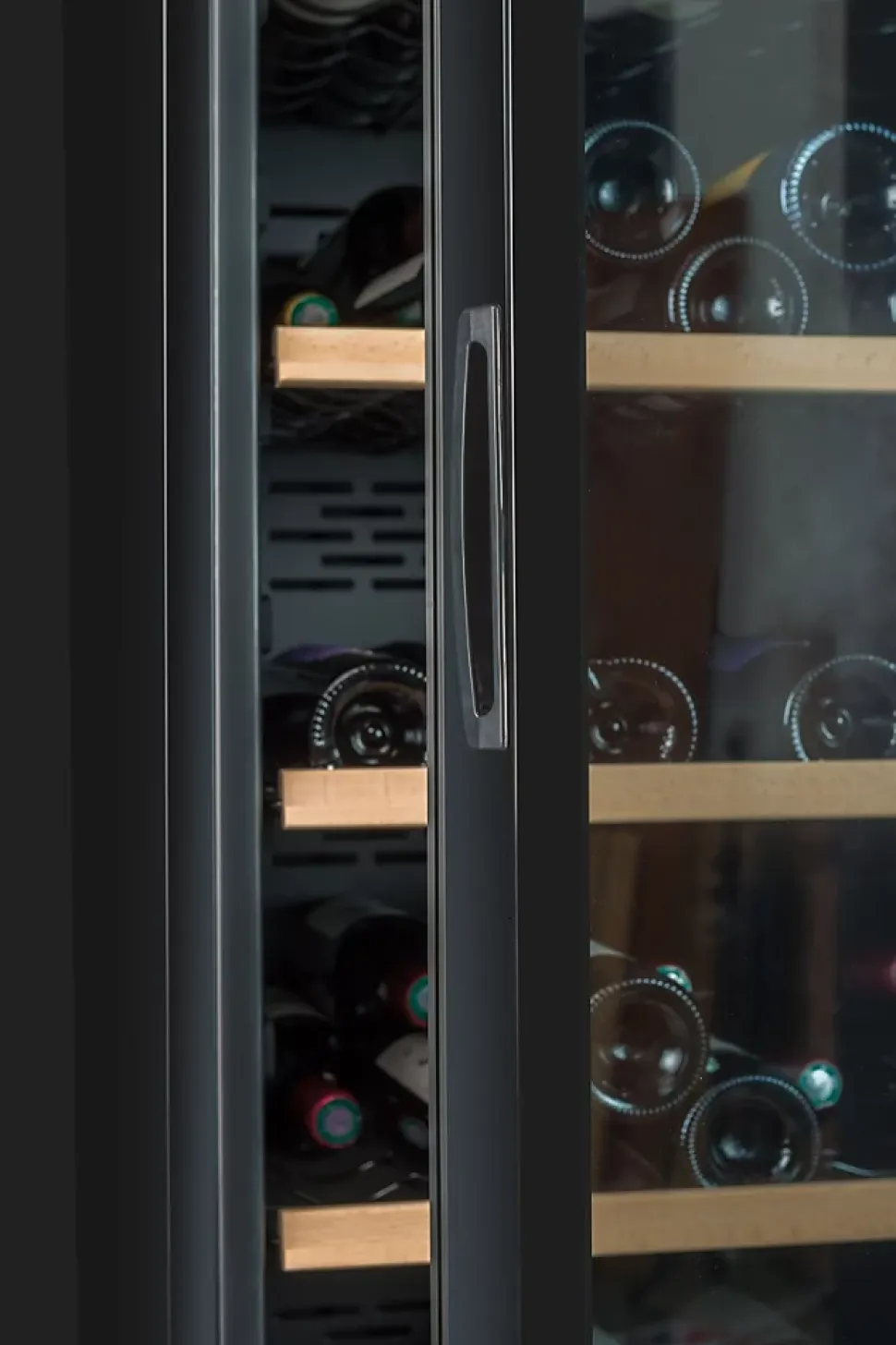 Cette cave a vin de vieillissement peut contenir jusqu’a 147 bouteilles. Elle offre une température stable, une hygrométrie contrôlée (50-80%), un systeme anti-vibrations et un systeme de renouvellement d’air avec filtre a charbon, tout en protégeant vos vins de la lumiere.