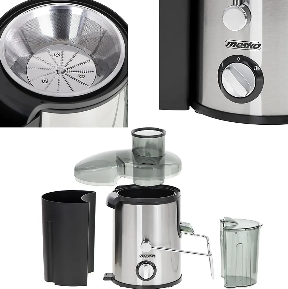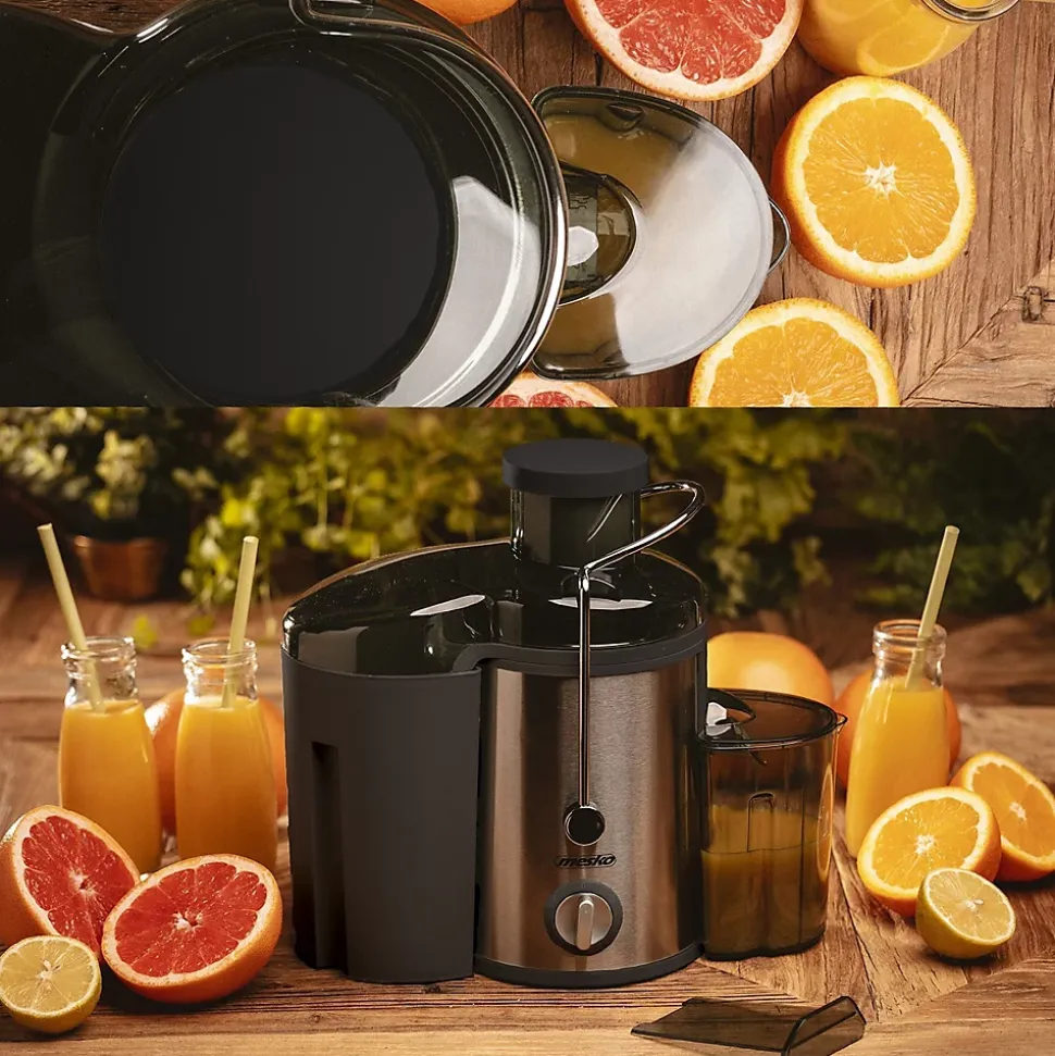 L’extracteur de jus fonctionnel et compact d’une puissance de 600 W vous permet de préparer des jus de fruits et de légumes, contribuant ainsi à prendre soin de la santé des utilisateurs. Le filtrage s’effectue à travers une fine passoire en acier inoxydable qui retient les solides. JDe cette façon, seul le jus contenant le plus de vitamines va dans le récipient inclus dans le set. La pulpe et les graines restantes sont séparées dans un deuxième récipient de 1,5 L. Le récipient à jus d’une capacité de 0,45 L est équipé d’un couvercle qui empêche les éclaboussures incontrôlées du jus. Grâce au verrou de sécurité, il est impossible d’allumer un appareil mal monté. Le presse-agrumes MS 4126 vous permet de préparer très rapidement des jus de fruits et légumes d’un diamètre allant jusqu’à 65 mm, les plus gros doivent être coupés avant d’être insérés dans le distributeur.Caractéristiques techniques :- Puissance maximale 600 W- Puissance nominale 400 W- Fabriqué en acier inoxydable de la plus haute qualité- L ‘ouverture pour fruits et légumes entiers d’un diamètre de 65 mm- Presse instantanément des pommes entières, des carottes et d’autres fruits- Passoire fine en inox pour des jus veloutés- Évacuation des jus avec le DOUBLE SYSTEM- L ‘ensemble comprend un récipient à jus (0,45 L)- Récipient à pulpe d’une capacité de 1,5L- interrupteur à 3 voies- Verrouiller contre le démarrage d’un appareil mal assemblé- Base antidérapante stable – ventouses- Nettoyage rapide et facile – va au lave-vaisselle- Haute durabilité- Couleur noire…