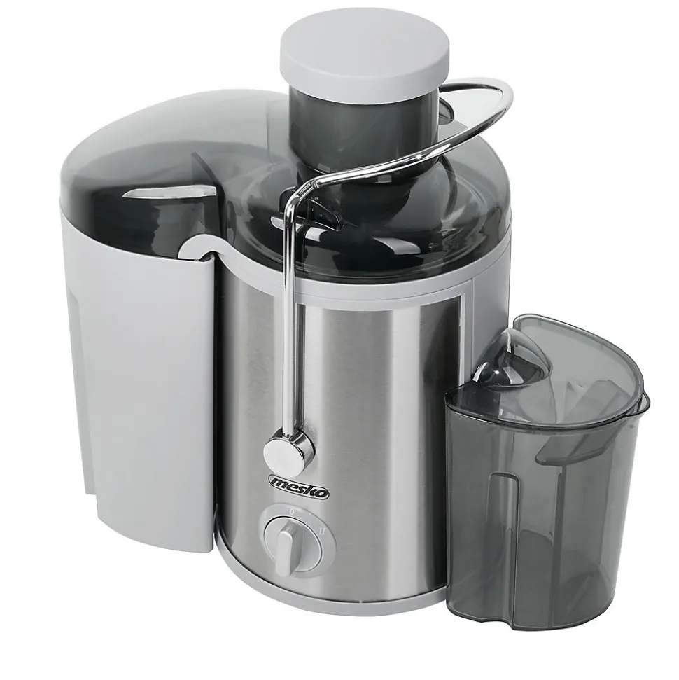 L’extracteur de jus fonctionnel et compact d’une puissance de 600 W vous permet de préparer des jus de fruits et de légumes, contribuant ainsi à prendre soin de la santé des utilisateurs. Le filtrage s’effectue à travers une fine passoire en acier inoxydable qui retient les solides. De cette façon, seul le jus contenant le plus de vitamines va dans le récipient inclus dans le set. La pulpe et les graines restantes sont séparées dans un deuxième récipient de 1,5 L. Le récipient à jus d’une capacité de 0,45 L est équipé d’un couvercle qui empêche les éclaboussures incontrôlées du jus. Grâce au verrou de sécurité, il est impossible d’allumer un appareil mal monté. Le presse-agrumes MS 4126 vous permet de préparer très rapidement des jus de fruits et légumes d’un diamètre allant jusqu’à 65 mm, les plus gros doivent être coupés avant d’être insérés dans le distributeur.Caractéristiques techniques :- Puissance maximale 600 W- Puissance nominale 400 W- Fabriqué en acier inoxydable de la plus haute qualité- L ‘ouverture pour fruits et légumes entiers d’un diamètre de 65 mm- Presse instantanément des pommes entières, des carottes et d’autres fruits- Passoire fine en inox pour des jus veloutés- Évacuation des jus avec le DOUBLE SYSTEM- L ‘ensemble comprend un récipient à jus (0,45 L)- Récipient à pulpe d’une capacité de 1,5L- interrupteur à 3 voies- Verrouiller contre le démarrage d’un appareil mal assemblé- Base antidérapante stable – ventouses- Nettoyage rapide et facile – va au lave-vaisselle- Haute durabilité- Couleur grise…