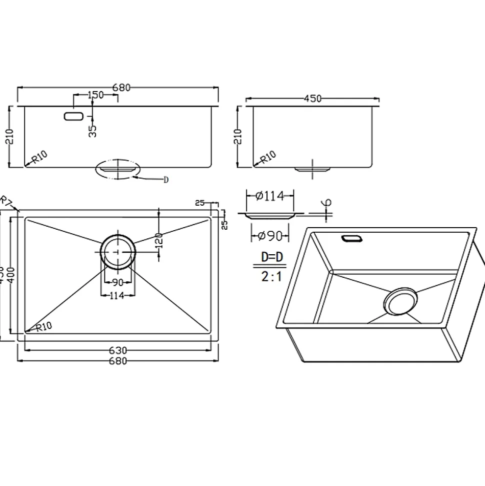 Caractéristiques de l’évier sous plan en acier inoxydable 304, 68x45x21 cm, avec trop plein, Or brossé PVD (TMLKSU-6845BG):Matière: Acier inoxydable 304Coloris : Or brossé PVDDimensions: 68x45x21 cmÉpaisseur : 1,5 mmType d’installation : sous planAvec trop pleinDiamètre de la bonde : 90mmLivré sans siphon;