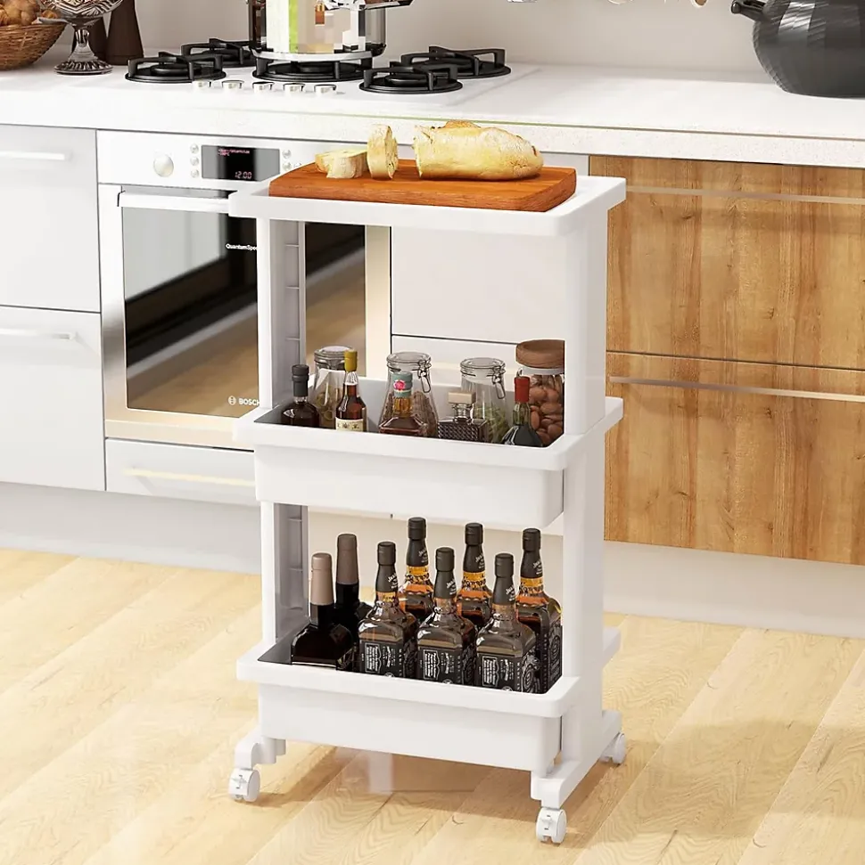 - Gain de Place et Large Application : Ce chariot roulant compact s’intègre parfaitement dans les petites zones, maximisant la fonctionnalité sans ajouter d’encombrement. Il peut être largement utilisé pour stocker des fournitures de cuisine, des articles essentiels de bureau, du matériel d’artisanat ou des articles de toilette de salle de bain.