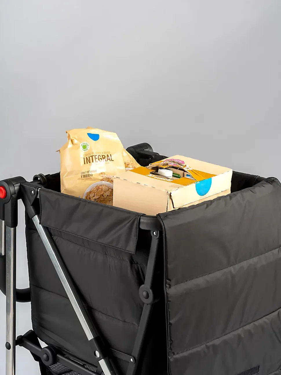 - Dispose d’une attache pour fixer le chariot sur le caddy du supermarché ou suspendre des sacs additionnels