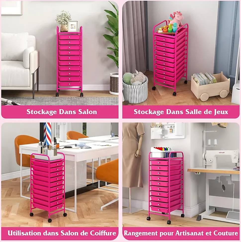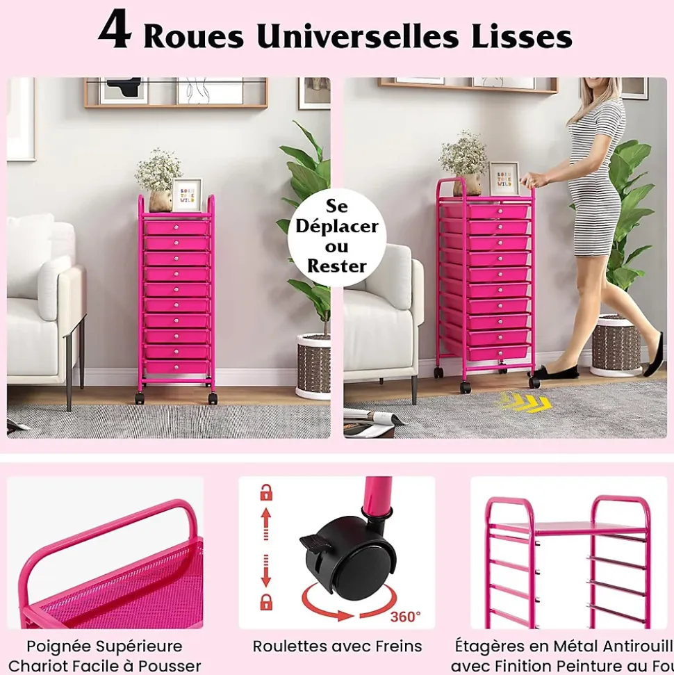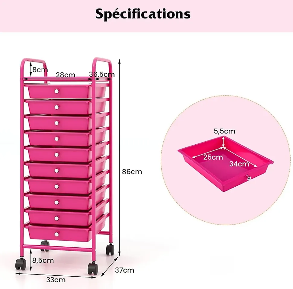 Je suis honoré de voir ce produit dans de nombreux produits. Nos véhicules de service sont fabriqués dans un matériau PP de haute qualité, robuste et durable, à la structure très raisonnable, avec un tiroir à 10 couches offrant un espace de stockage suffisant pour votre classification. La roue inférieure peut être pivotée à 360 degrés et la direction peut être contrôlée facilement. Deux des roues sont équipées de freins pour fixer la position à tout moment. N’hésitez pas, venez l’acheter! Rendez votre maison plus ordonnée !