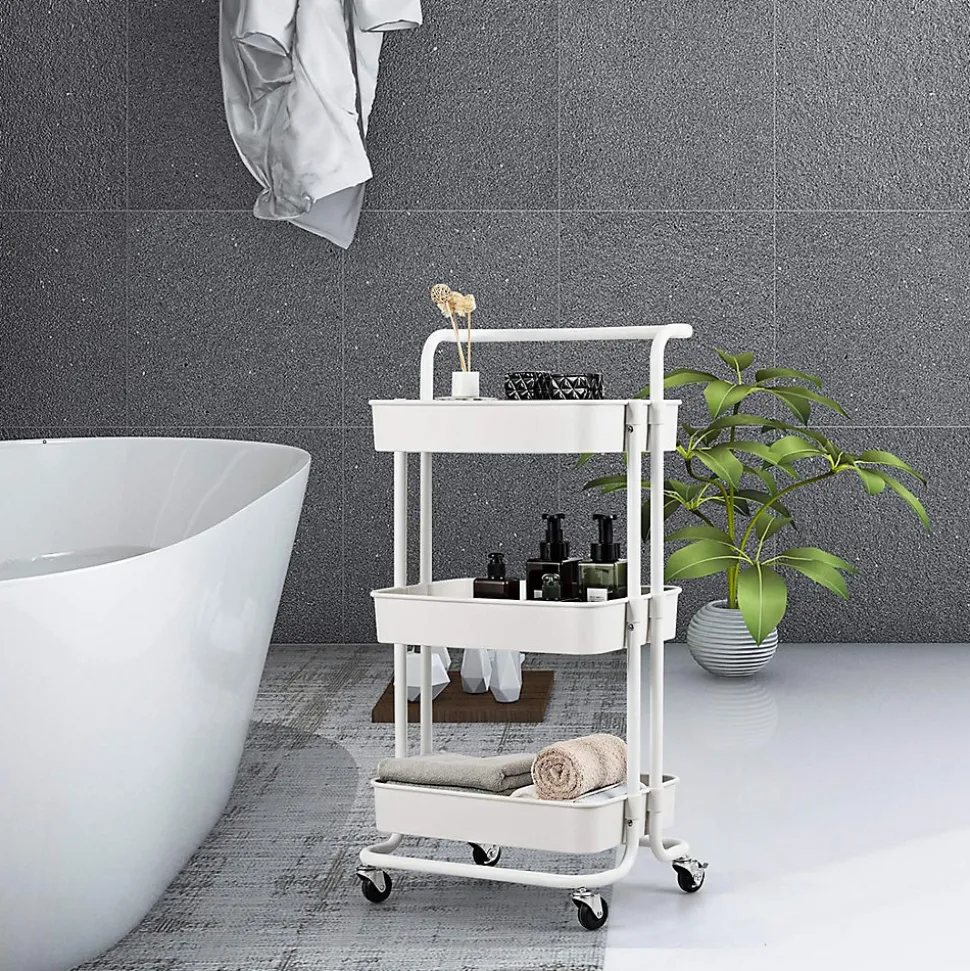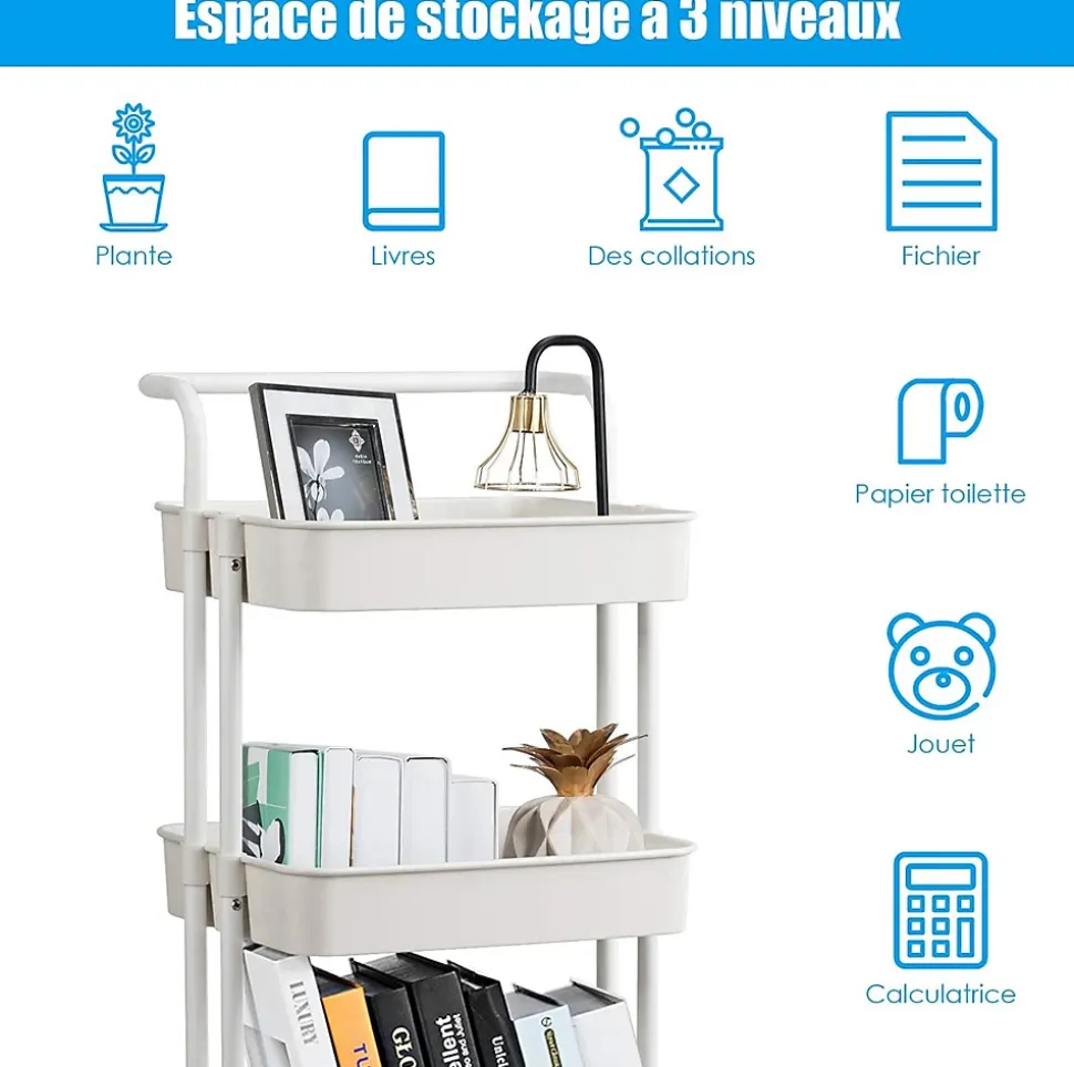 3 Étages de Rangement : Notre chariot de rangement présente 3 paniers de rangement grands sur différent hauteur, cela vous permet de ranger des objets en ordre. Les parois des chariots sont des parois bien haute qui fourni une très bonne protection pour les objets stockés dedans.