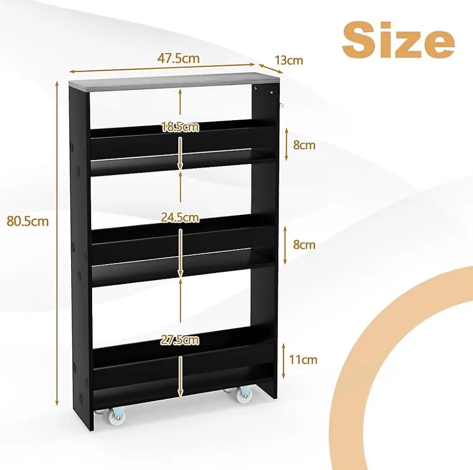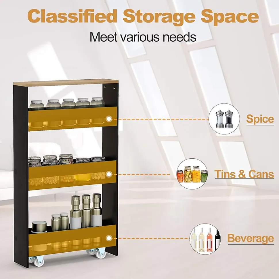 Vous vous inquiétez de votre cuisine encombrée ? Notre chariot de rangement peut vous aider avec cette inquiétude. Le chariot de rangement dispose de 3 compartiments et un dessus lisse pour répondre à vos différents besoins de stockage, ce qui constitue une excellente solution de stockage pour rendre votre pièce plus rangée et propre. Le design aux 4 roulettes et à la pognée vous permet de le déplacer facilement. Ce chariot de rangement peut être placé non seulement dans la cuisine, mais aussi dans le salon, la salle de bain, la buanderie. Venez passer une commande !