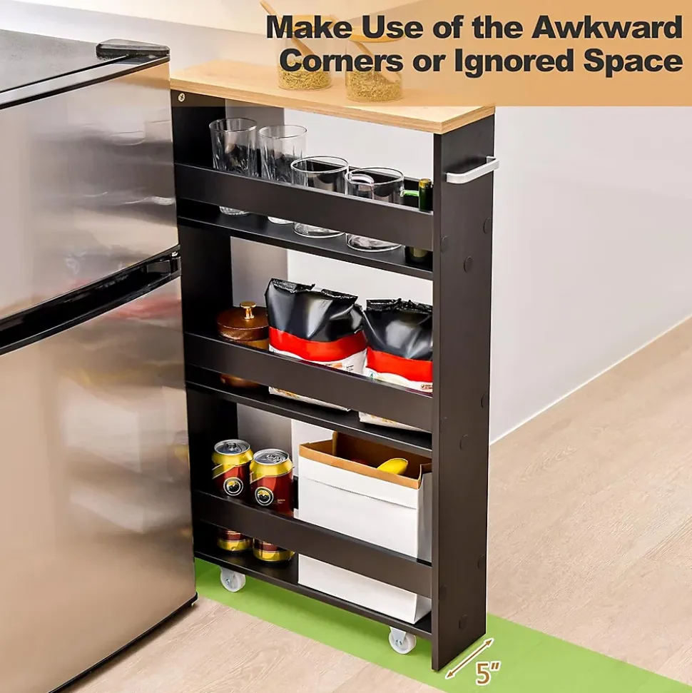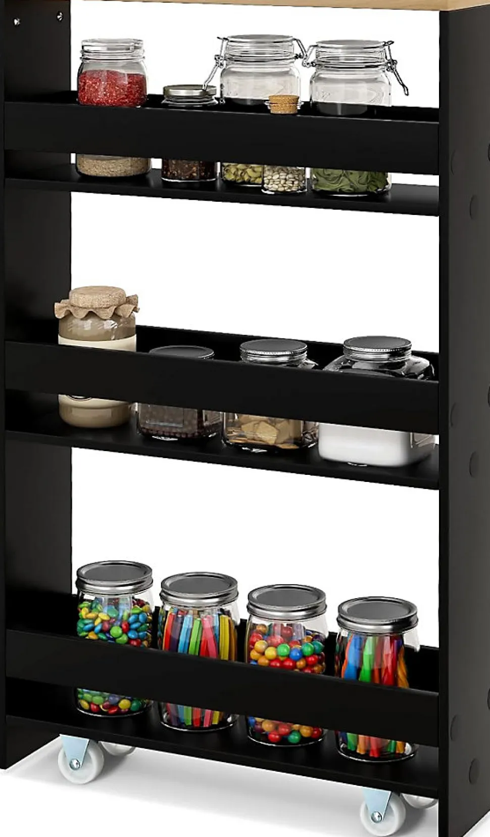 - Matériau de haute qualité : Fabriqué en panneaux de particules de haute qualité, notre chariot de rangement de cuisine peut durer des années d’utilisation sans déformation ni fissuration. Les panneaux épais offrent une forte capacité de charge, garantissant que la structure est stable.