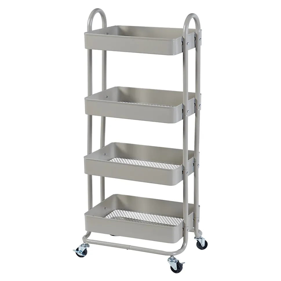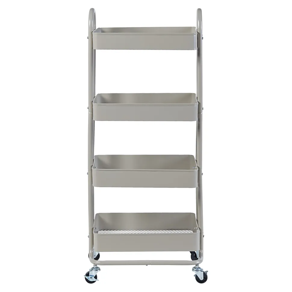 Chariot de serviceCe chariot de service pratique est l’accessoire parfait pour votre maison ou votre lieu de travail. Avec ses quatre roulettes, il se déplace facilement dans différents espaces. Ses 4 paniers offrent amplement d’espace pour la vaisselle, les boissons, les snacks ou autres objets. Il est polyvalent : que ce soit dans la cuisine pour la vaisselle ou dans la salle de bains pour les produits de soins, il est également utile au bureau pour les fournitures. Son design intemporel s’adapte à divers styles d’aménagement, ajoutant une touche d’élégance à votre pièce.Description :- chariot de service élégant et intemporel pour la maison ou le bureau- 4 paniers grillagés pour la vaisselle, les snacks et autres objets- transport sans effort gâce à 4 roulettes – freins d’arrêt sur 2 roulettes pour une bonne stabilité- pratique pour servir les aliments et les boissons- organise les ustensiles et les fournitures de bureau- s’intègre dans différents styles d’aménagement- montage rapide et facileDimensions :- totales (hauteur x largeur x profondeur) : 103,5 x 46 x 35 cmMatière :acierCouleur :camelContenu de la livraison :1 x chariot de cuisineProduit de la marque :[en.casa]