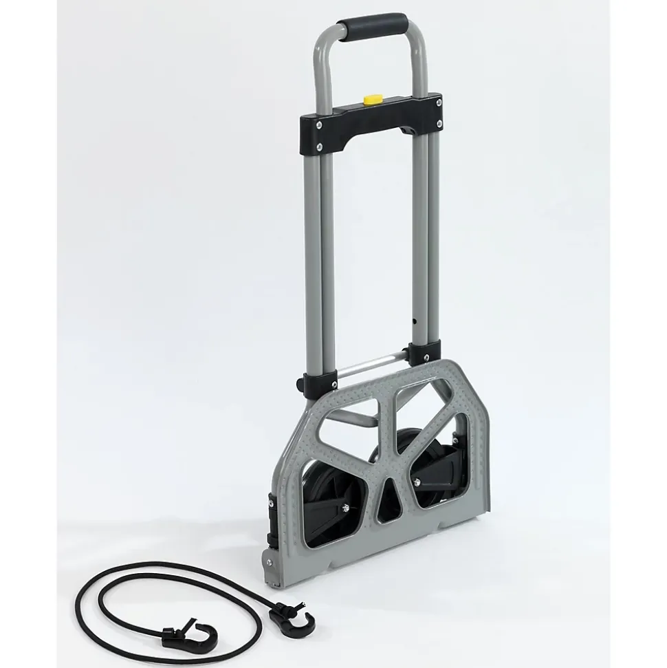 Transportez facilement vos objets les plus lourds grâce à ce chariot pliant.FICHE TECHNIQUE- Armature en acier.- Facile à manipuler, pliable et facile à ranger.- Inclus un tendeur élastique de 80 cm afin de sécuriser vos chargements.- Equipé d’une poignée télescopique permettant un usage facile.CARACTERISTIQUES TECHNIQUES- Dimensions : L. 38 x l. 36,5 x H. 96 cm.- Poids maximum supporté : 70 kg.- Poids : 3 kg.