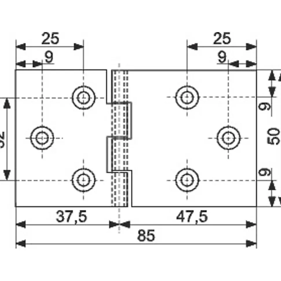 Charnière à nœud Modèle double feuille Pour table Longueur total : 85 mm Hauteur total : 50 mm Vendu par 1