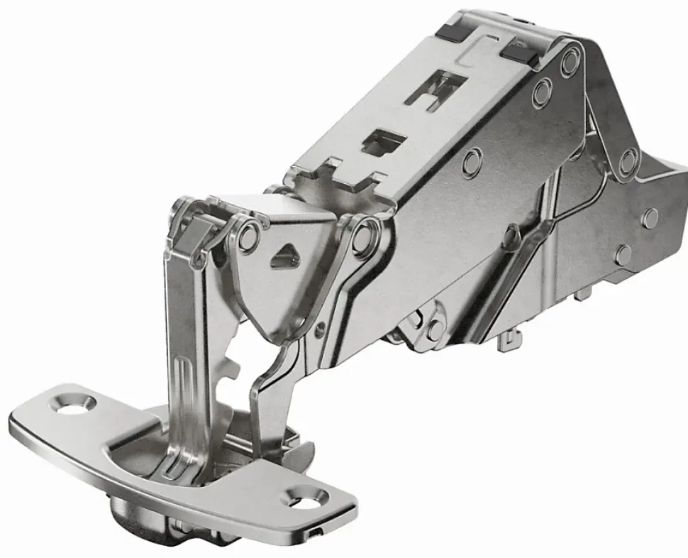 Charnière invisible à visser Gamme Sensys Pour porte à montant central Angle d’ouverture : 165 ° Entraxe fixation : 52 mm Coudure : 9,5 mm Vendu par 1