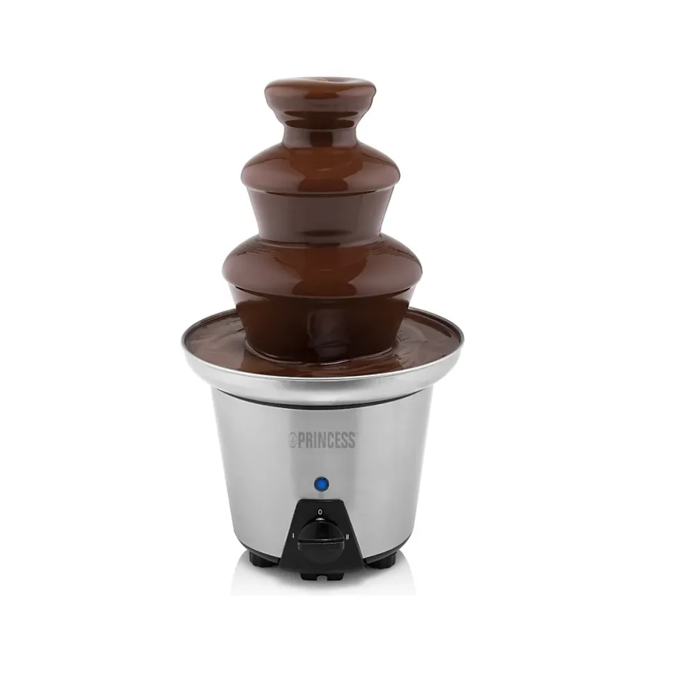 Chocolatière 0.7l 90w inox Princess – Fontaine à chocolat XL 01.292998.01.001 de PrincessPour s’amuser lors d’une fête d’enfants ou simplement pour régaler vos enfants avec des fruits/guimauves nappées de chocolat. Chauffe le chocolat et l’élève en hauteur. La pompe et la température se contrôlent séparément. Idéal pour les desserts. – Type : Préparation de dessert.Type : Fontaine à chocolat.Puissance (W) : 90.Capacité : 0.7 L.Thermostat réglable : Non.Matière : Acier.Compatible lave-vaisselle : Oui.Fontaine inox (3 parties) : Oui.Fonction maintien au chaud : Oui.Entretien facile : Oui.Pieds antidérapants : Oui.Divers : Fontaine extra large.Fonction(s) supplémentaire(s) : Position maintien au chaud.Sécurité(s) : Témoin lumineux de fonctionnement, Patins antidérapants.Couleur : Inox.Hauteur : 32.5 cm.Poids : 1.3 kg.
