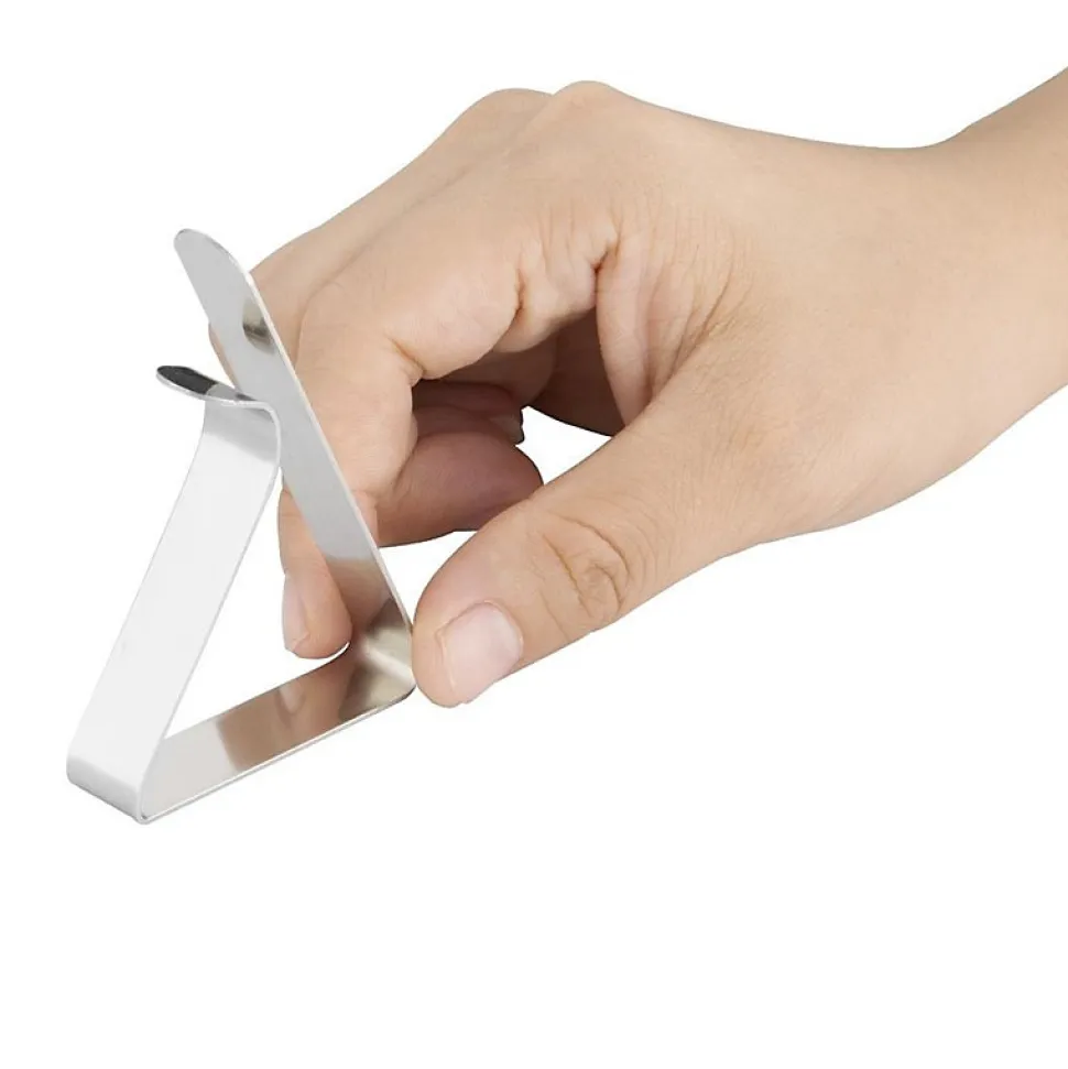 Clips de nappe inox par lot de 4 Assurez-vous que vos nappes restent toujours bien fixées à la table avec ce lot de quatre pinces pour nappes d’Olympia. Conçus pour être utilisés sur des plateaux de table d’une profondeur maximale de 45 mm, les pinces à nappe permettent de garder vos nappes propres, sans plis et fermement fixées à votre surface de repas – améliorant votre présentation tout en garantissant que votre nourriture et votre vaisselle restent en sécurité sur la table à tout moment.Ces pinces pour nappes peuvent également être utilisées lorsque vous dînez à l’extérieur, afin d’éviter que vos nappes ne s’envolent et de garantir le bon déroulement de votre service à tout moment.Les pinces sont également dotées d’une finition polie, ce qui les rend exceptionnellement attrayantes et élégantes et donne à vos tables une touche plus professionnelle.Nombre de Pièces: 4Dimensions: 73(H) x 12(L) x 57(P)mmMatériel: InoxPoids: 60 gProfondeur de 45 mm pour maintenir les nappes bien rangées et fixées à votre tableIdéal pour une utilisation en extérieurLa construction métallique peut être utilisée à l’extérieurFinition polie pour un aspect professionnelConstruction monobloc pour une utilisation facile