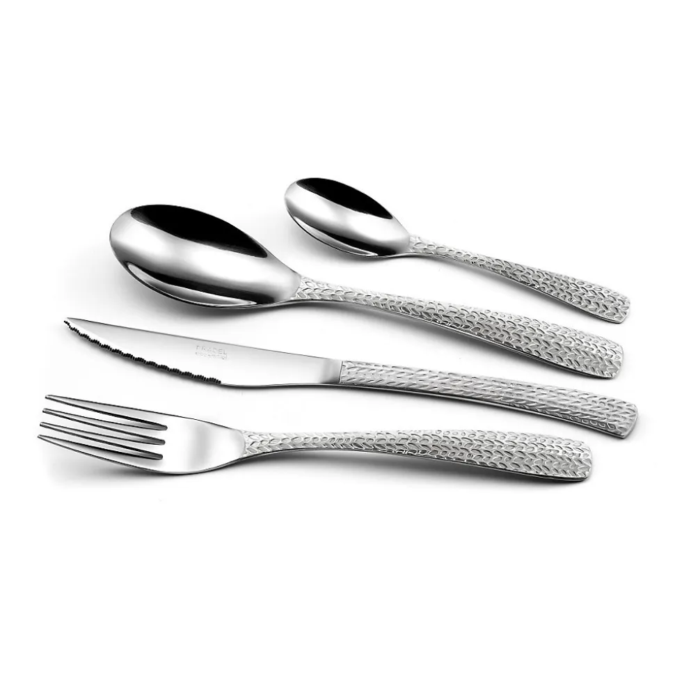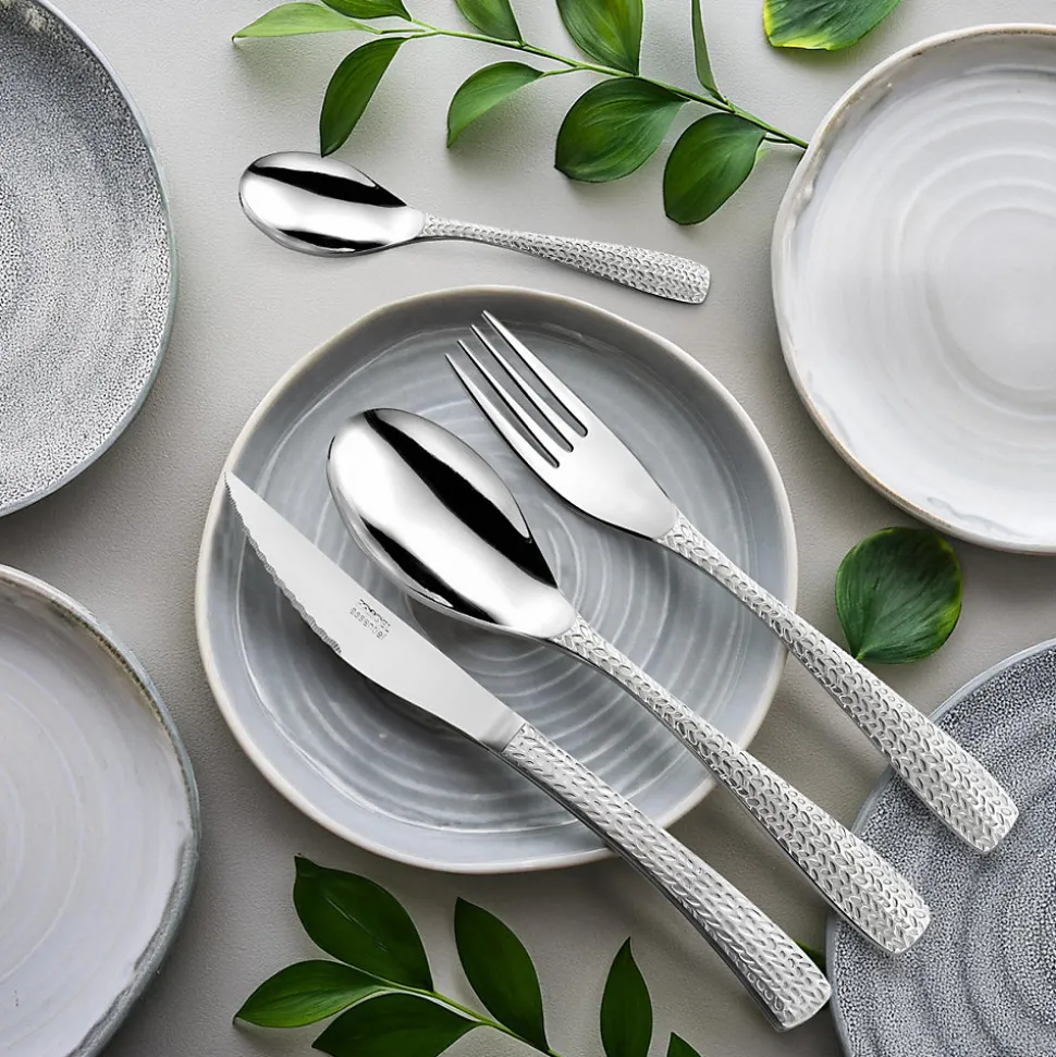- Fourchette de table 20.6 cm, Cuillère de table 20.6 cm, Couteau steak 22.1 cm, Cuillère à café 13.8 cm