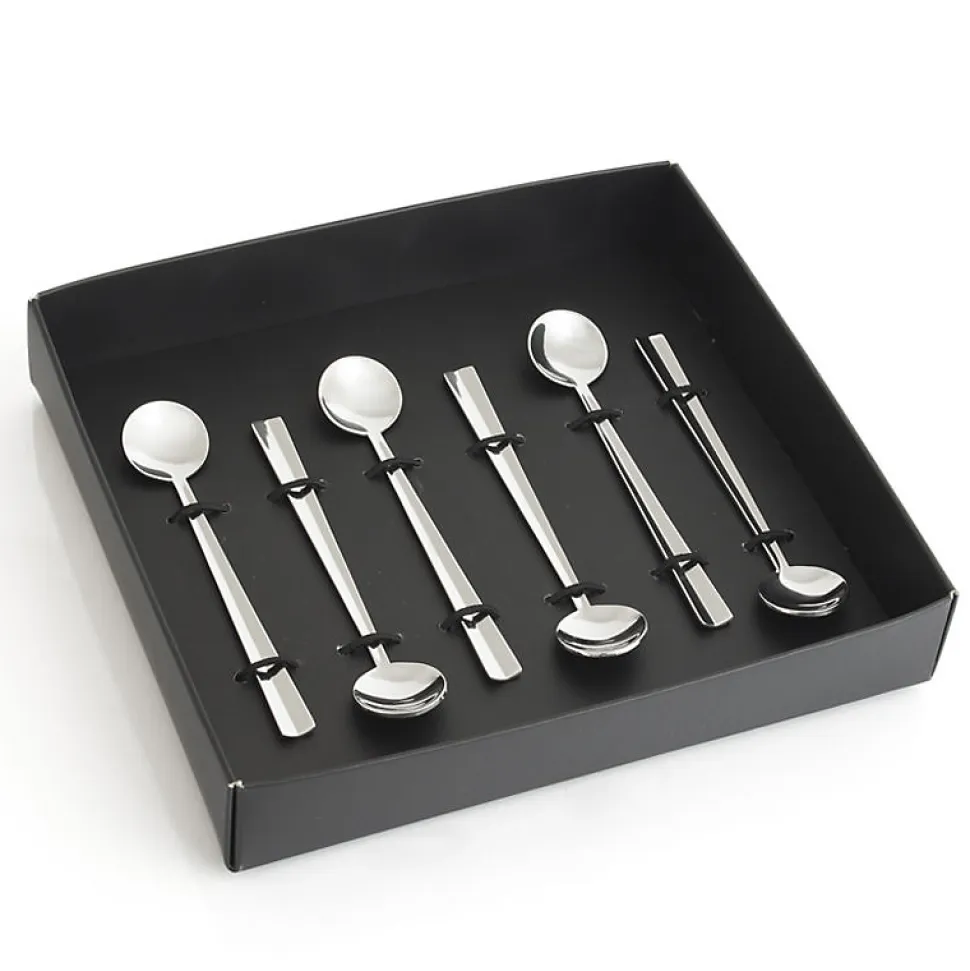 Coffret de 6 cuillères moka ‘Nagasaki’ signées TABLE PASSION, idéales pour compléter une offre d’ustensiles de table haut de gamme. Design contemporain aux lignes droites et finitions brillantes, présentation en boîte cadeau noire prête à la vente. Produit compact facile à expédier et attractif en catalogue : bon rapport qualité/prix pour clientèle recherchant vaisselle moderne et élégante.Collection : Divers Matière : Acier inoxydable (inox) Couleur : Argent / Métallique Longueur : 10.80 cm Hauteur : 0.15 cm