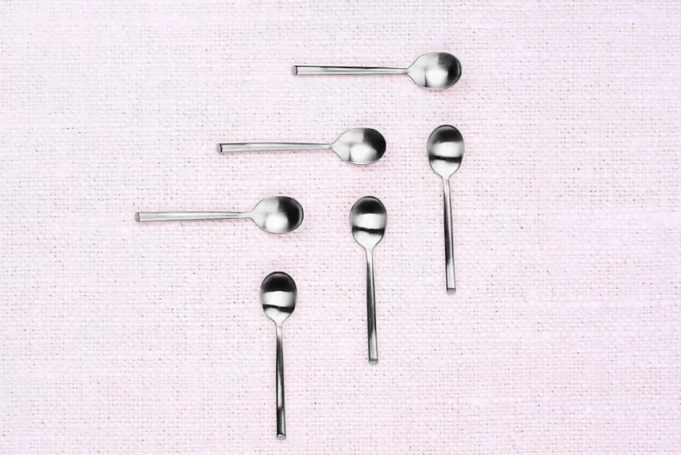 Ce coffret de 6 petites cuillères aux courbes asymétriques viendra compléter la ménagère du même nom. La petite cuillère est souvent plus utilisée, c’est pourquoi elle est aussi proposée séparément.Fabriqué en acier inoxydable pour résister à une utilisation quotidienne, ces couverts sont durables et d’un entretien facile au lave-vaisselle. Dans sa version de couleur inox avec une finition mate, ce modèle à l’effet miroir chic et éclatant illuminera votre table et étonnera vos convives.La collection NUDE réunit les indispensables de la préparation, du service et du dressage qui s’accordent à l’ensemble des collections d’arts de table Björn. Conçus à partir de matériaux de haute qualité, les produits NUDE résistent à l’épreuve du temps et s’utilisent au quotidien comme pour les grandes occasions en apportant un bel équilibre à votre table.
