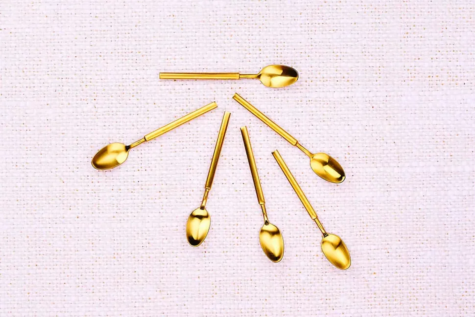 Ce coffret de 6 petites cuillères au design à la fois traditionnel et moderne viendra compléter la ménagère du même nom. La petite cuillère est souvent plus utilisée, c’est pourquoi elle est aussi proposée séparément.Fabriqué en acier inoxydable pour résister à une utilisation quotidienne, ces couverts sont durables et d’un entretien facile au lave-vaisselle. Dans sa version de couleur dorée avec une finition mate, ce modèle à l’effet miroir chic et éclatant illuminera votre table et étonnera vos convives.La collection NUDE réunit les indispensables de la préparation, du service et du dressage qui s’accordent à l’ensemble des collections d’arts de table Björn. Conçus à partir de matériaux de haute qualité, les produits NUDE résistent à l’épreuve du temps et s’utilisent au quotidien comme pour les grandes occasions en apportant un bel équilibre à votre table.