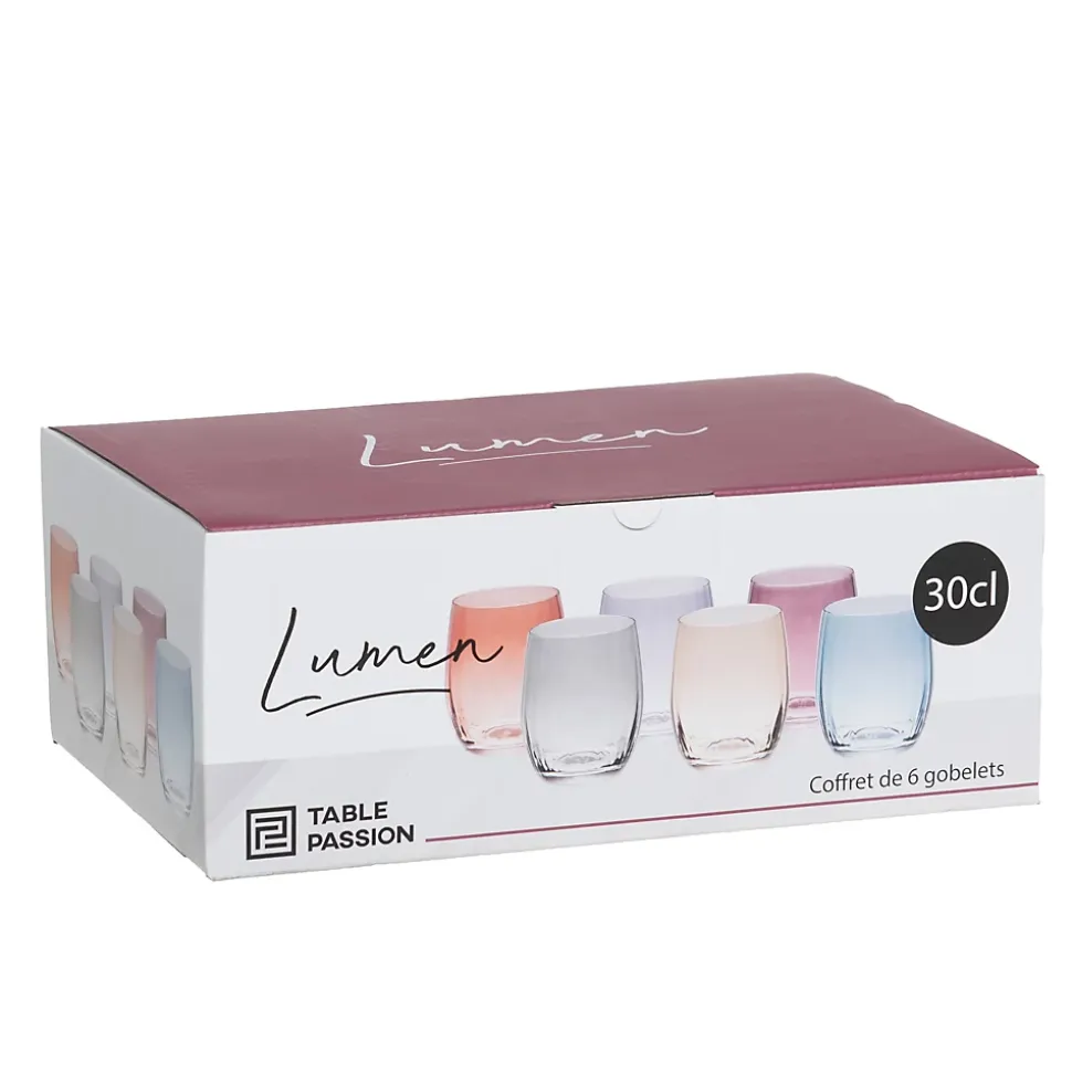 Apportez une touche de couleur et d’élégance à votre table avec ce coffret de 6 gobelets Lumen de 30 cl signé Table Passion. Chaque verre, décliné en nuances variées, apporte fraîcheur et originalité à vos moments conviviaux. Pour préserver leur éclat et la qualité des matériaux, ces gobelets ne sont pas compatibles avec le lave-vaisselle. Idéals pour sublimer vos boissons au quotidien ou lors d’occasions spéciales.Diamètre du verre : 7,2 cmHauteur du verre : 9,8 cmPoids du verre : 204 gCollection : Lumen Matière : Verre cristallin Couleur : Multicolore Longueur : 18.00 cm Largeur : 27.00 cm Hauteur : 10.00 cm Diamètre : 7.00 cmCapacité : 30.00 cl Compatible Lave-vaisselle