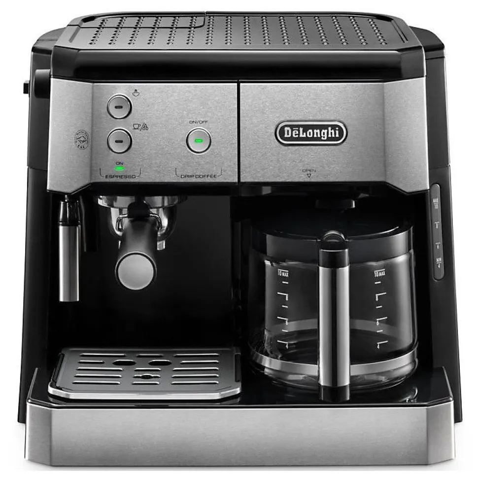 Le combiné Delonghi BCO 421 S allie expresso professionnel et cafetière filtre dans un design compact. Son système à 15 bars de pression professionnelle extrait des arômes intenses pour un espresso onctueux surmonté d’une crème dorée, tandis que la fonction filtre prépare jusqu’à 12 tasses de café traditionnel. Compatible moulures et dosettes, réservoir avant pivotant, panneau de contrôle intuitif, mousseur manuel intégré pour cappuccinos et lattes, châssis en acier inoxydable, entretien simplifié avec composants amovibles.