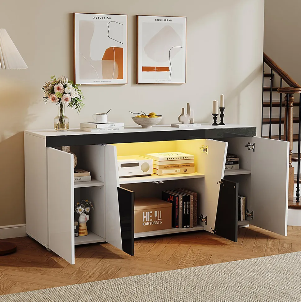 - Fusion de styles : la combinaison classique de couleurs blanc et noir, associée au design moderne des portes d’armoire biseautées, convient à différents styles d’intérieur tels que le minimalisme moderne et le luxe discret, et apporte une touche de mode et de sophistication au salon.