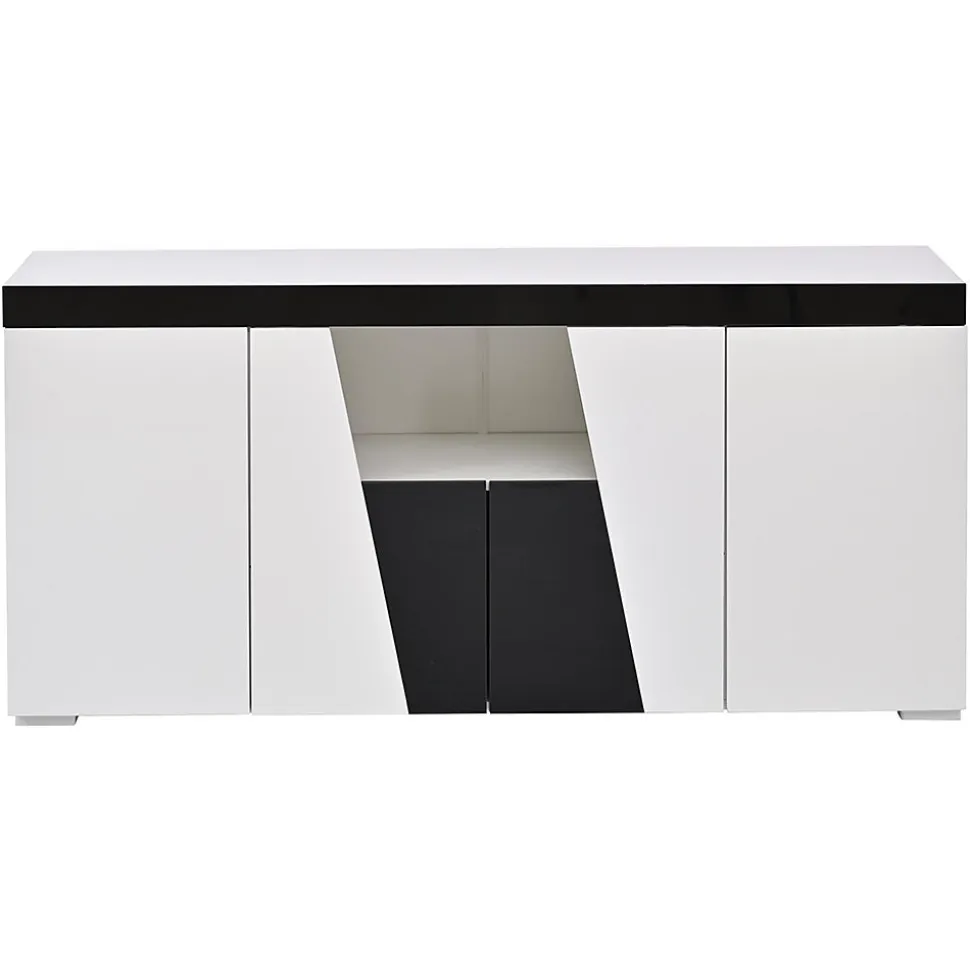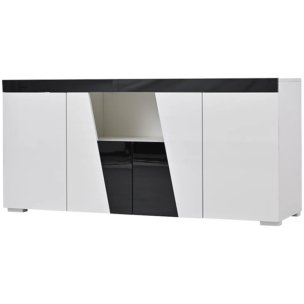 - Conception des portes : quatre portes, dont les deux portes centrales présentent un design en diagonale et une palette de couleurs noir et blanc, se démarquant ainsi de la monotonie des armoires traditionnelles. Le design est à la fois simple et raffiné, faisant de cette armoire un élément attrayant qui attire le regard dans le salon.