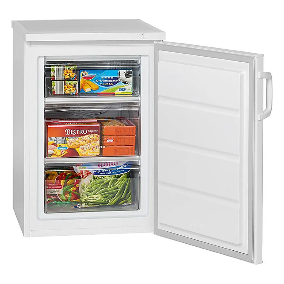 Finie la corvée de fouiller au fond du congélateur : avec ses 3 tiroirs transparents, ce modèle de 85 litres vous offre une vue d’ensemble immédiate sur vos stocks. Organisez vos viandes, légumes et plats cuisinés séparément pour une gestion de vos réserves plus simple et hygiéniqueSpécificités- Capacité nette : 85 litres- Congélateur 4 étoiles- Contrôle progressif de la température- Plage de température : ? -18°C- Capacité de congélation : 4 kg / 24 h- Durée de stockage par coupure de courant : max. 15 h- Dégivrage manuel- 3 tiroirs de congélation- Bac à glaçons- Poignée de porte extérieure- Arrêt de porte à droite, réversible- Pieds réglablesDonnées techniquesTension de raccordement : 220-240 V~ / 50 HzPuissance nominale : 70 WClasse climatique : SN/N/ST/T (+10°C ~ +43°C)Liquide de refroidissement : R600aNiveau de bruit : 40 dBDonnées de consommationConsommation d’énergie / 24 h : 0,324 kWhConsommation d’énergie / année : 131 kWh(selon le règlement européen sur les fiches techniques 2019/2016)