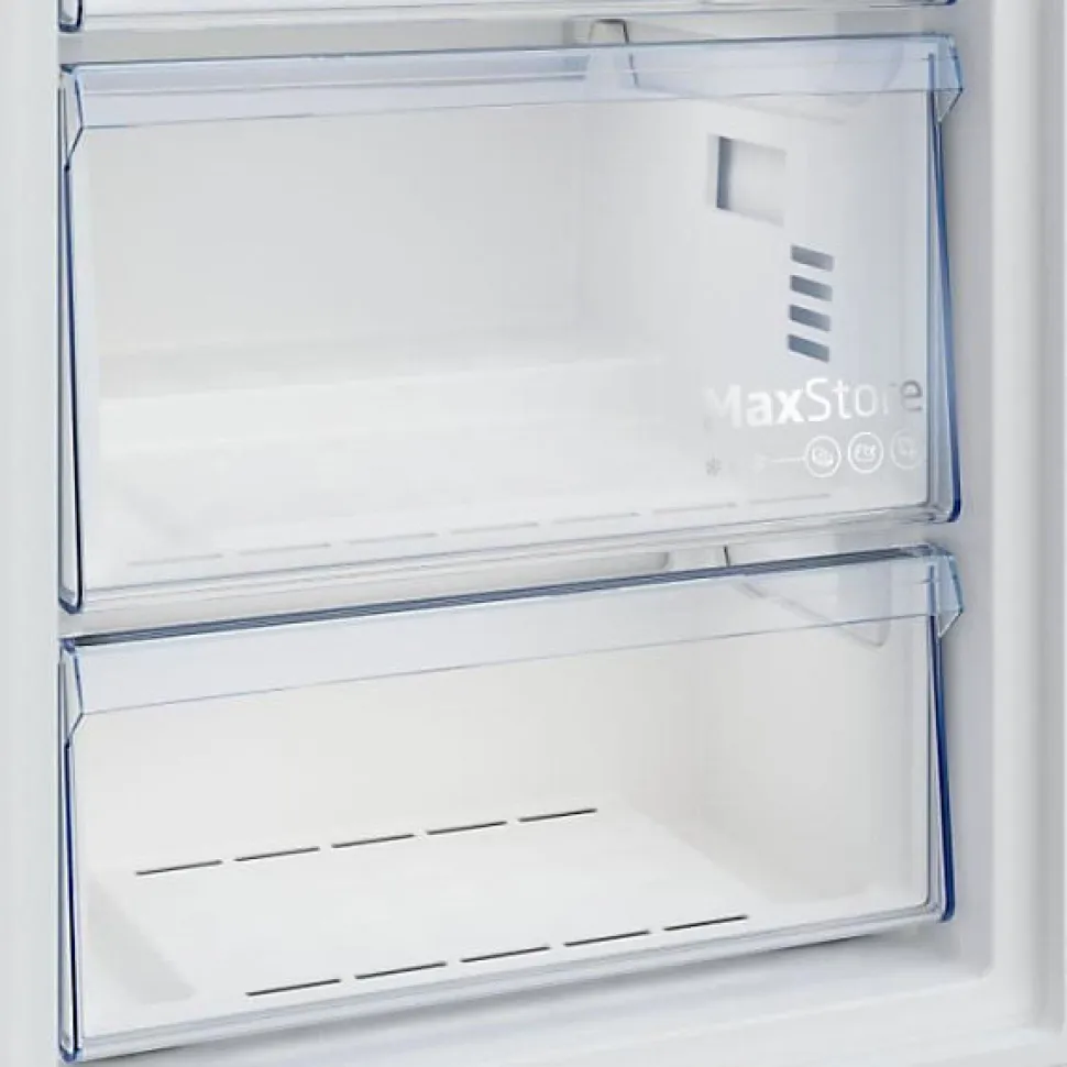 Le congélateur armoire BEKO B1RFNE314W combine un grand volume de 286 L avec une technologie No Frost assurant une conservation optimale sans givre. Son compresseur ProSmart Inverter permet de réduire la consommation énergétique de 25% tout en maintenant un fonctionnement silencieux. La porte réversible offre une grande flexibilité d’installation, complétée par une alarme de porte ouverte et un dégivrage automatique. Aspect moderne et durable, avec disponibilité des pièces pendant 12 ans.