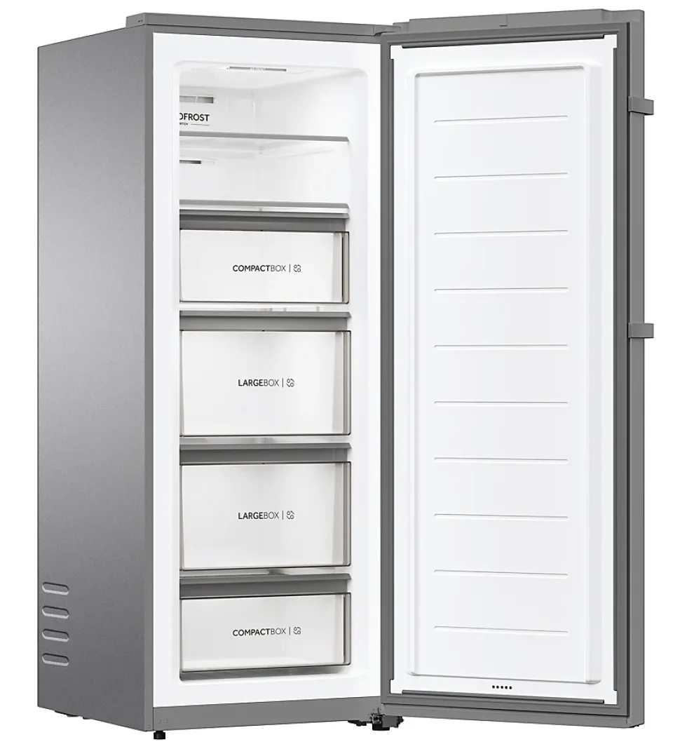 Congélateur armoire Haier H4F226SEH1 226 L Total No Frost avec écran tactile, 4 tiroirs transparents, portes réversibles, éclairage LED et capacité de congélation 14 kg/24h. Classe énergétique E, faible niveau sonore (37 dB) et garantie 2 ans.