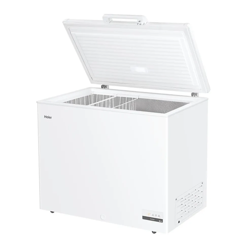 Le Congélateur Coffre Haier HCE301E est un modèle freestanding avec une capacité utile de 300 L, conçu pour les familles nombreuses ou les professionnels. Il offre une classe énergétique E avec une consommation annuelle d’environ 209-232 kWh. Son niveau sonore est de 35 à 40 dB(A), ce qui est relativement silencieux. Ce congélateur à froid statique dispose d’un dégivrage manuel, d’une autonomie de 25 heures en cas de coupure, et un pouvoir de congélation de 16 kg/24h. Le contrôle de température est électronique via un panneau externe, avec alarme visuelle de température. Il possède 2 paniers métalliques, roulettes, poignée extérieure, et serrure pour sécurité. Son design intérieur en aluminium martelé assure robustesse, et le joint antibactérien prévient moisissures et bactéries. Garantie 2 ans.
