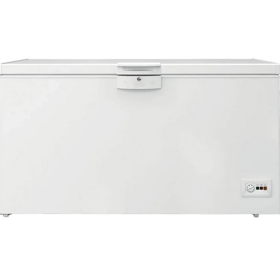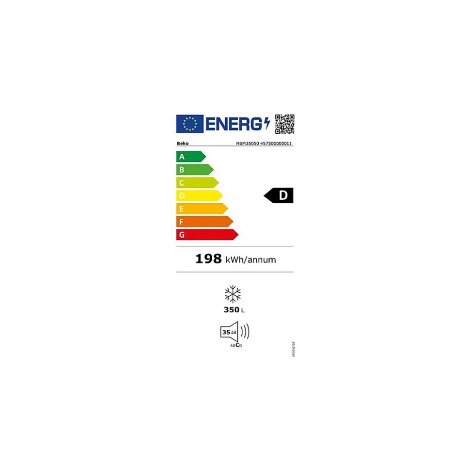 Congélateur coffre 155.5cm 350l Beko – Congélateur coffre HSM35050de Beko avec MinFrost : Dégivrez deux fois moins souvent votre appareil. Avec la technologie MinFrost, grâce à l’évaporateur intégré dans les parois du congélateur, la formation de givre est divisé par deux. La poignée de votre congélateur est dotée d’une serrure pour en protéger l’accès. Voyants de contrôle : Les voyants lumineux vous donnent des informations sur le fonctionnement de votre congélateur. Ils vous permettent de visualiser la mise sous tension, la congélation rapide et d’être averti en cas de remontée anormale de la température. Super isolation & autonomie 45h : Grâce à la super isolation, en cas de coupure de courant, ce congélateur permet de conserver en toute sécurité vos aliments pendant 45 heures. Technologie Freezer Guard -15°C : Grâce à une électronique et à un compresseur spécifique, ce congélateur est conçu pour fonctionner à une température ambiante atteignant jusqu’à -15°C. Idéal pour les pièces non chauffées ! – Type de produit : Congélateur coffre.Volume (total) : 350 L.Pouvoir de congélation : 15,8 Kg/24H.Autonomie : 45 heures.Nombre de panier(s) : 4.Niveau sonore : 35 dB.Conso élec. : 198 kWh/an.Label énergie : D.Catégorie sonore : C.Le + produit : Technologie MinFrostEclairage.Serrure sur la poignée.Régulation mécanique avec sonde.Livré avec 4 paniers.Régulation : Mécanique.Affichage T° : Non.Alarme : Non.Connecté : Non.Classe climatique : SN-T.Couleur : Blanc.Dimensions (LxHxP) : 155,5 x 86 x 67,5 cm.Poids net : 58 Kg.
